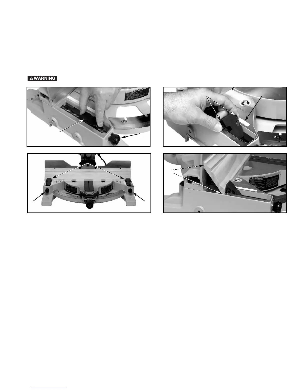 MAKE SURE THAT THE FENCES ARE CLEAR OF THE GUARD AND BLADE BEFORE USING SAW.