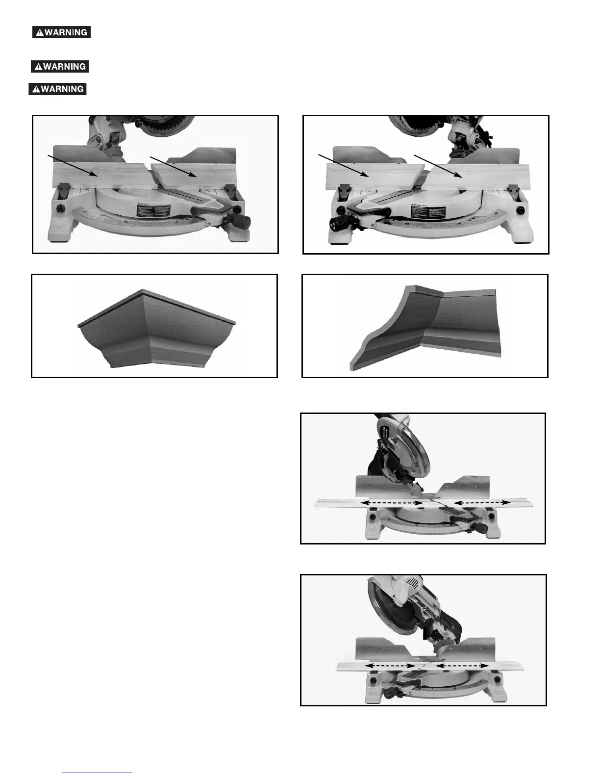 WHEN CUTTING CROWN MOULDING USING THE CROWN MOULDING STOPS, DO NOT BEVEL THE CUT. THE