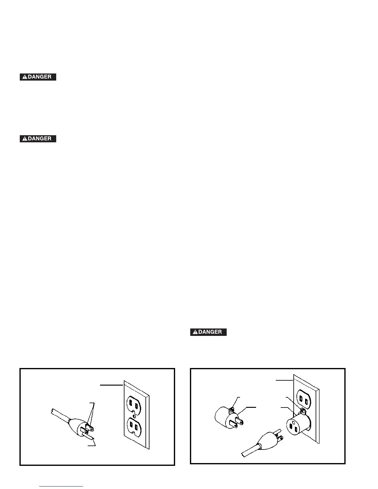 prong grounding type plugs and matching receptacle which will accept the machine’s plug. Before connecting the
