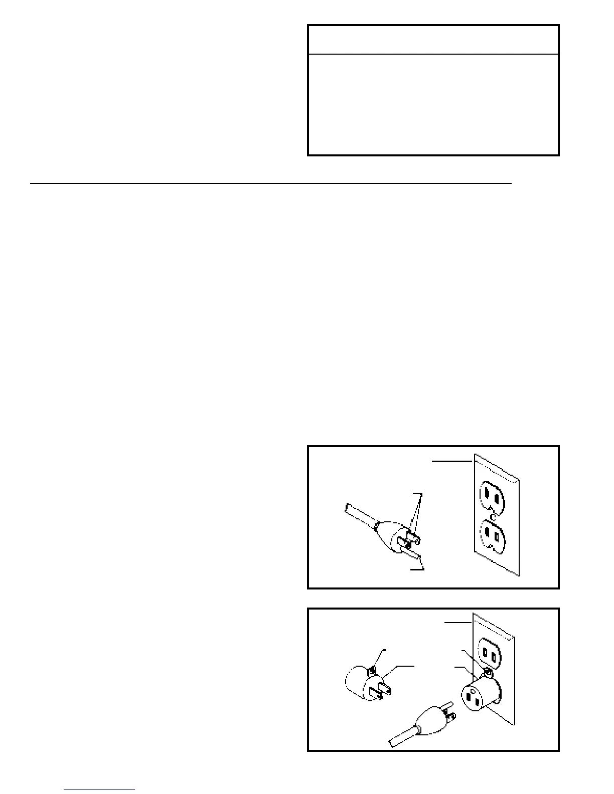 Do not modify the plug provided - if it will not fit the outlet, have the proper outlet inst alled by a qualified electrician.