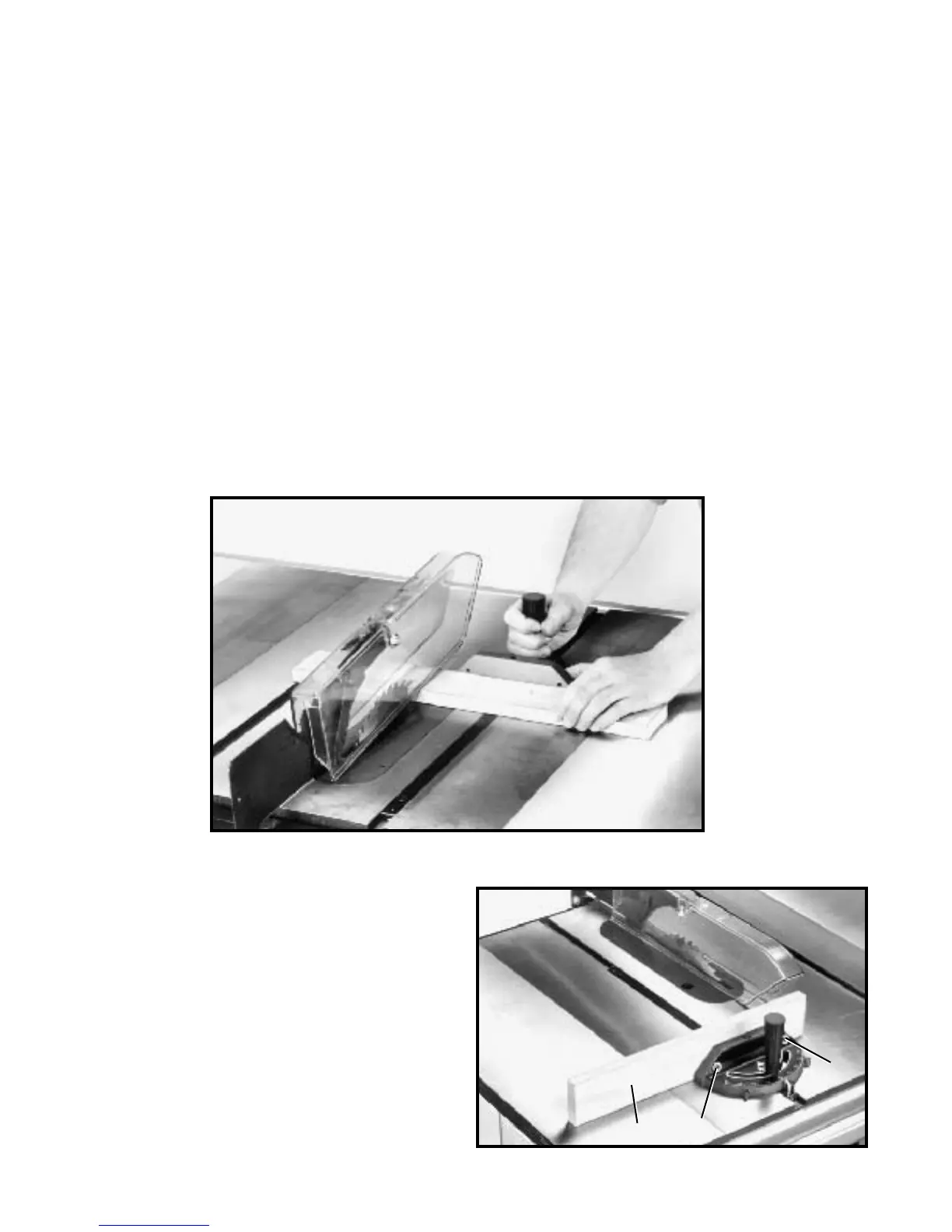table slot. When bevel cutting (blade tilted), use the lef t miter gage slot so that the blade tilt s away from the miter gage