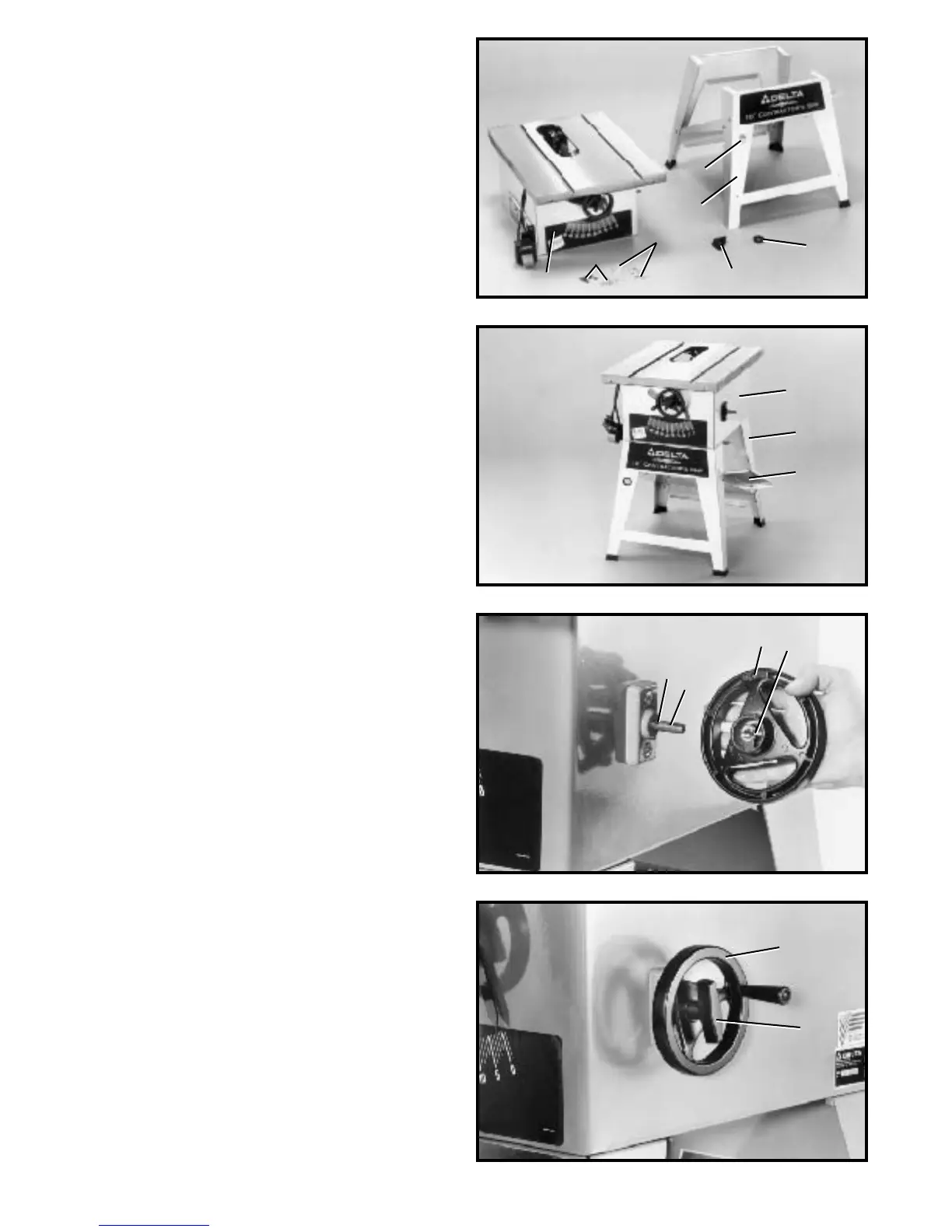 1. Assemble blade tilting handwheel (A) Fig. 10, to