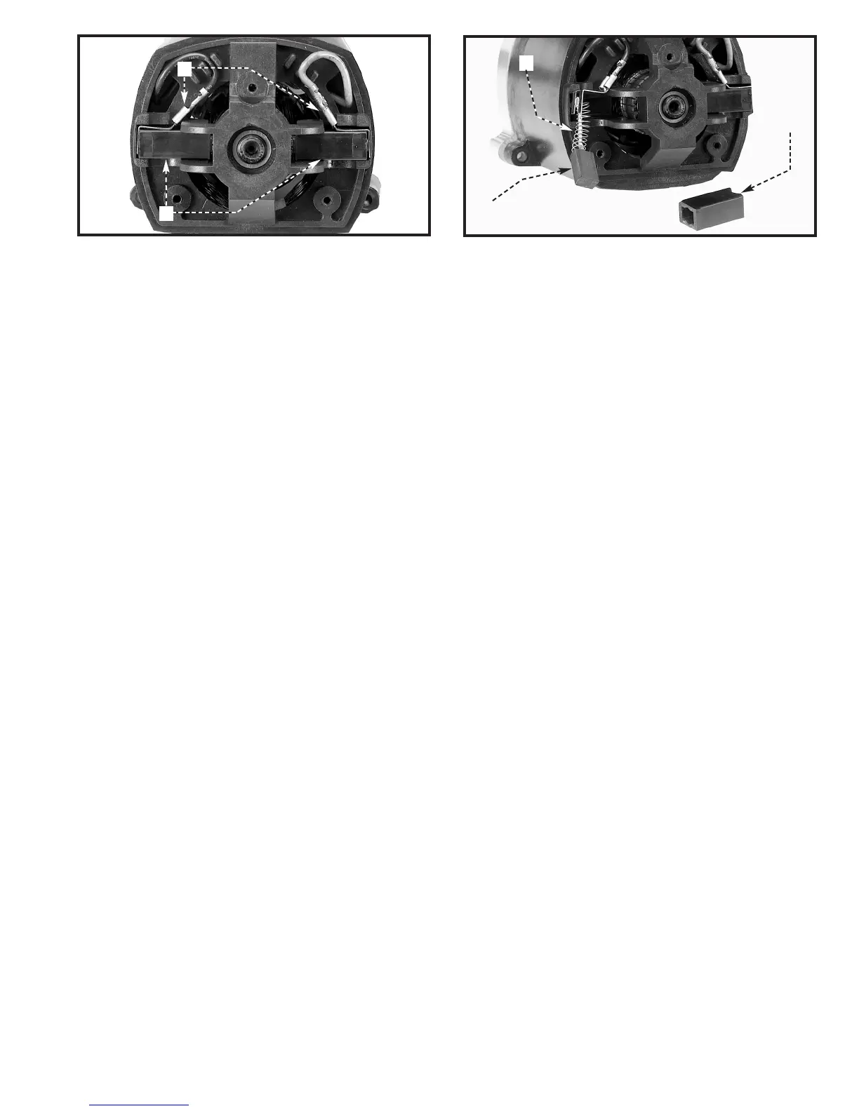 3/16″ or if either spring (F) or shunt wire is burned or damaged in any way, replace both brushes. If the brushes are