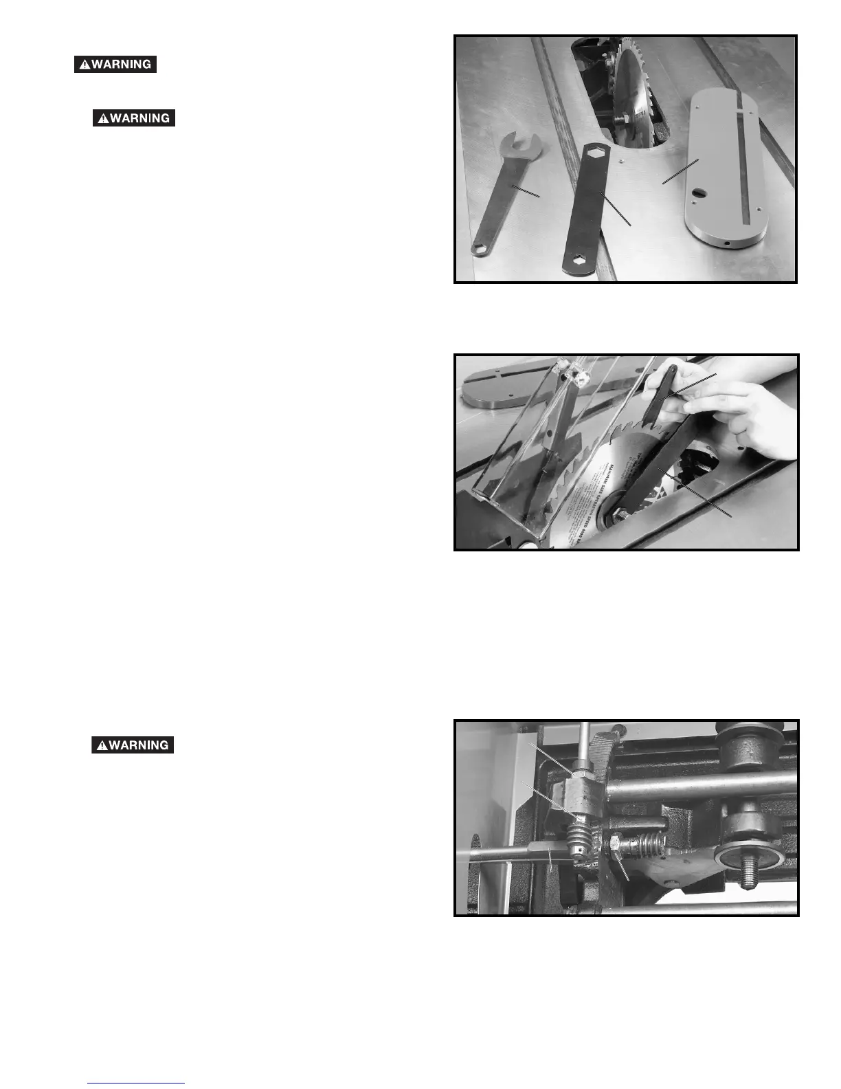 outside blade flange and arbor nut. With wrench (B) Fig.