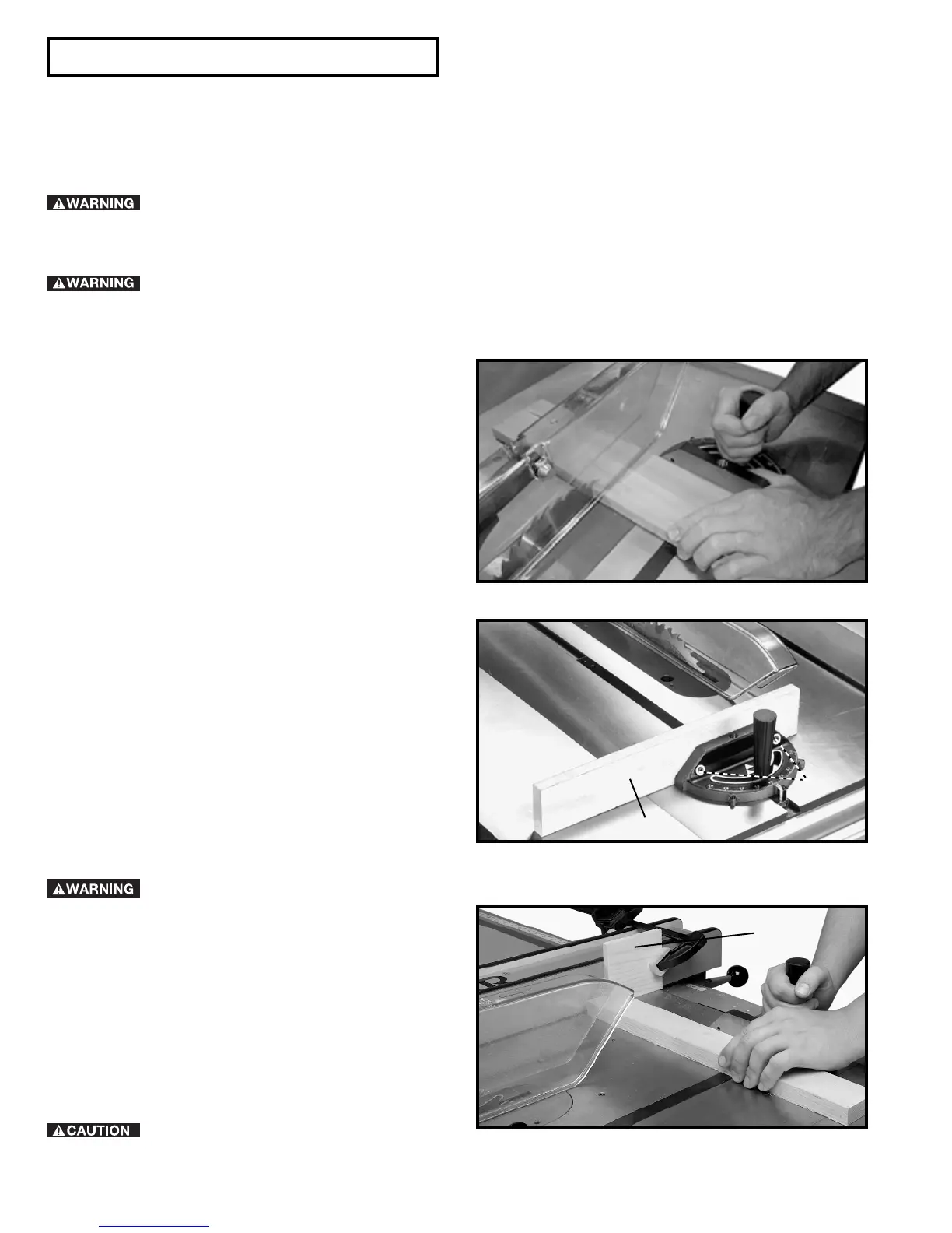 Cross-cutting requires the use of the miter gage to posi-