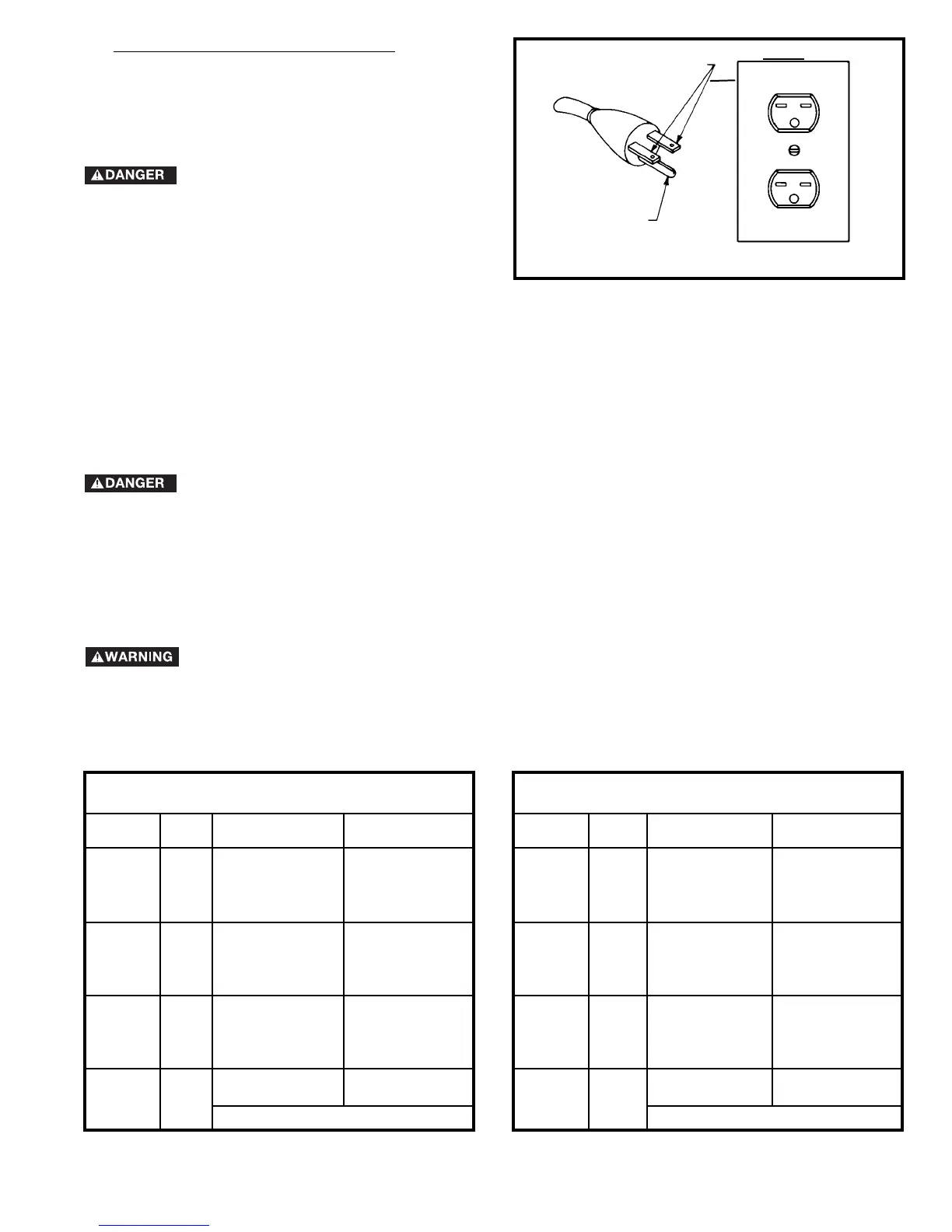 undersized cord will cause a drop in line voltage, resulting in loss of power and overheating. Fig. D-1 or D-2, shows