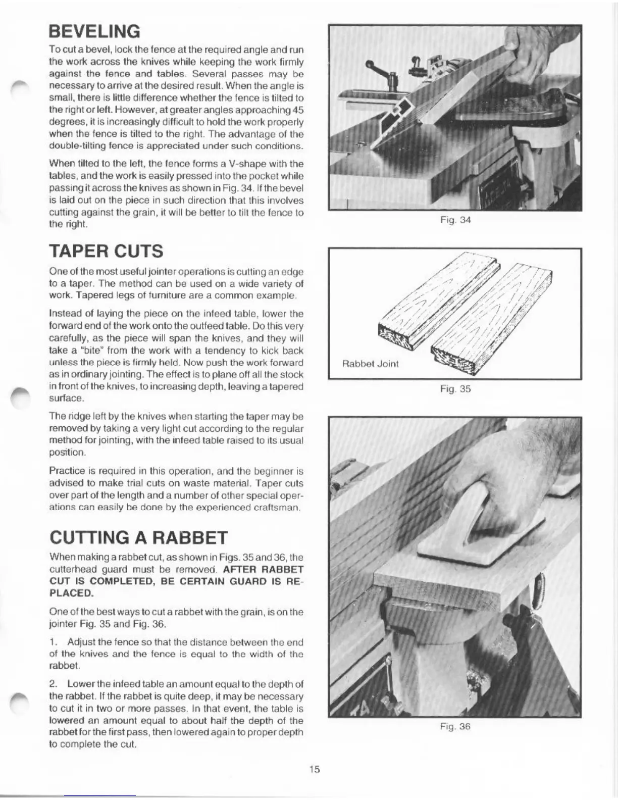 Delta 37-280 - Beveling; Taper Cuts; Cutting a Rabbet