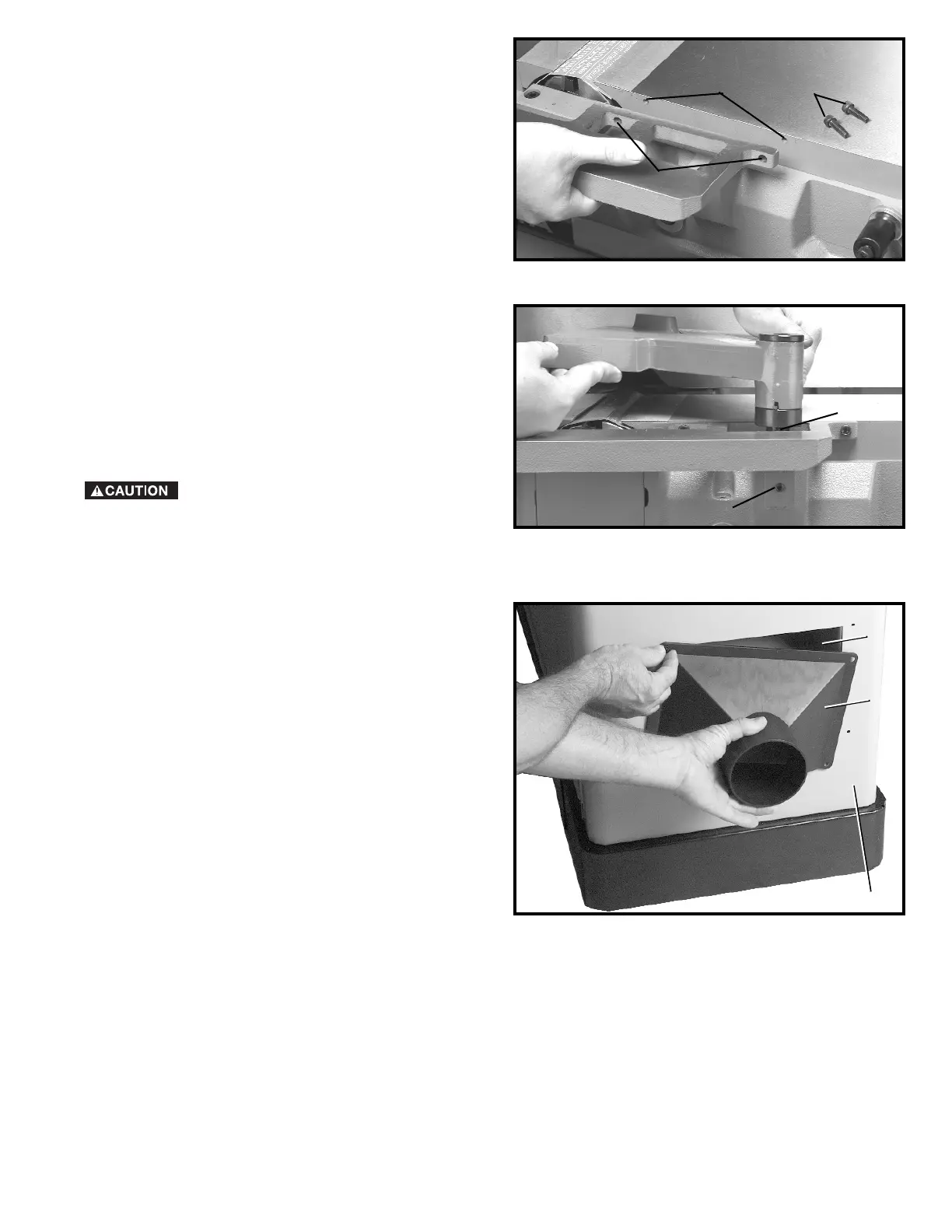 tapped hole (B) in the front of the Jointer. Make sure