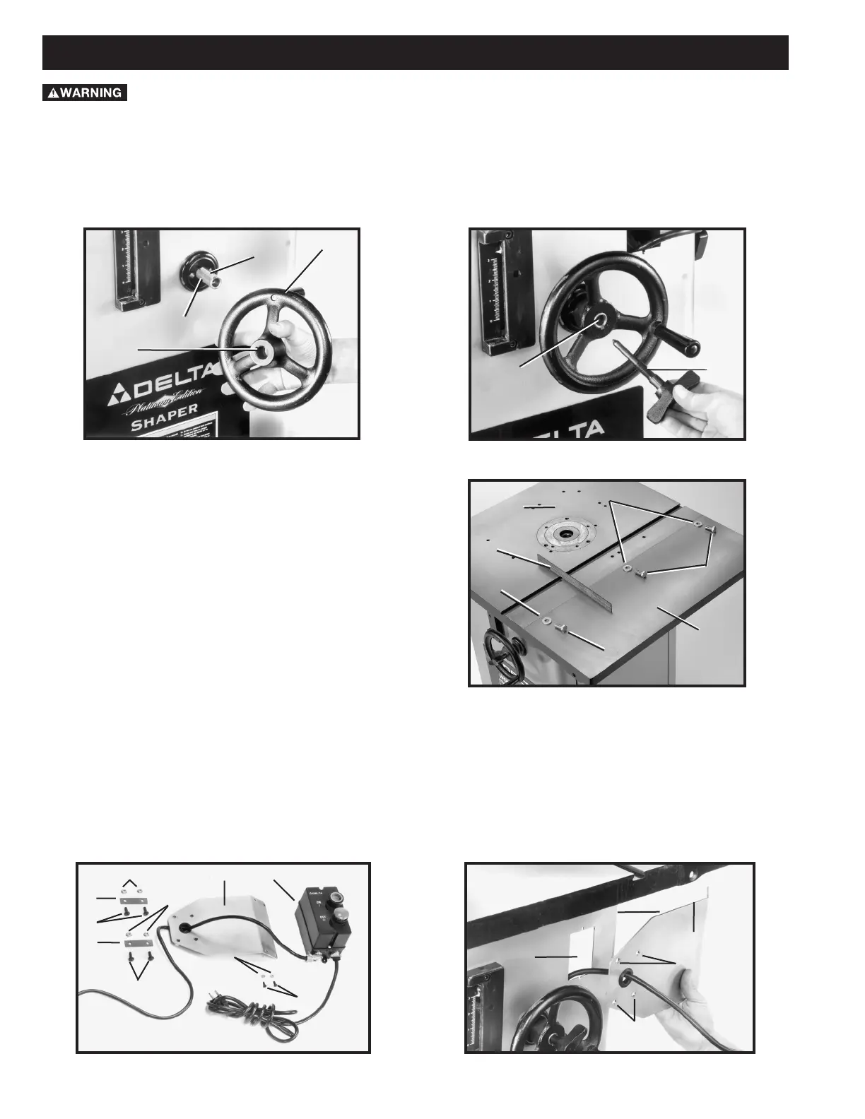 1. The on/off switch (A) Fig. 5 and switch mounting bracket (B) are shipped inside the shaper cabinet. Open the side