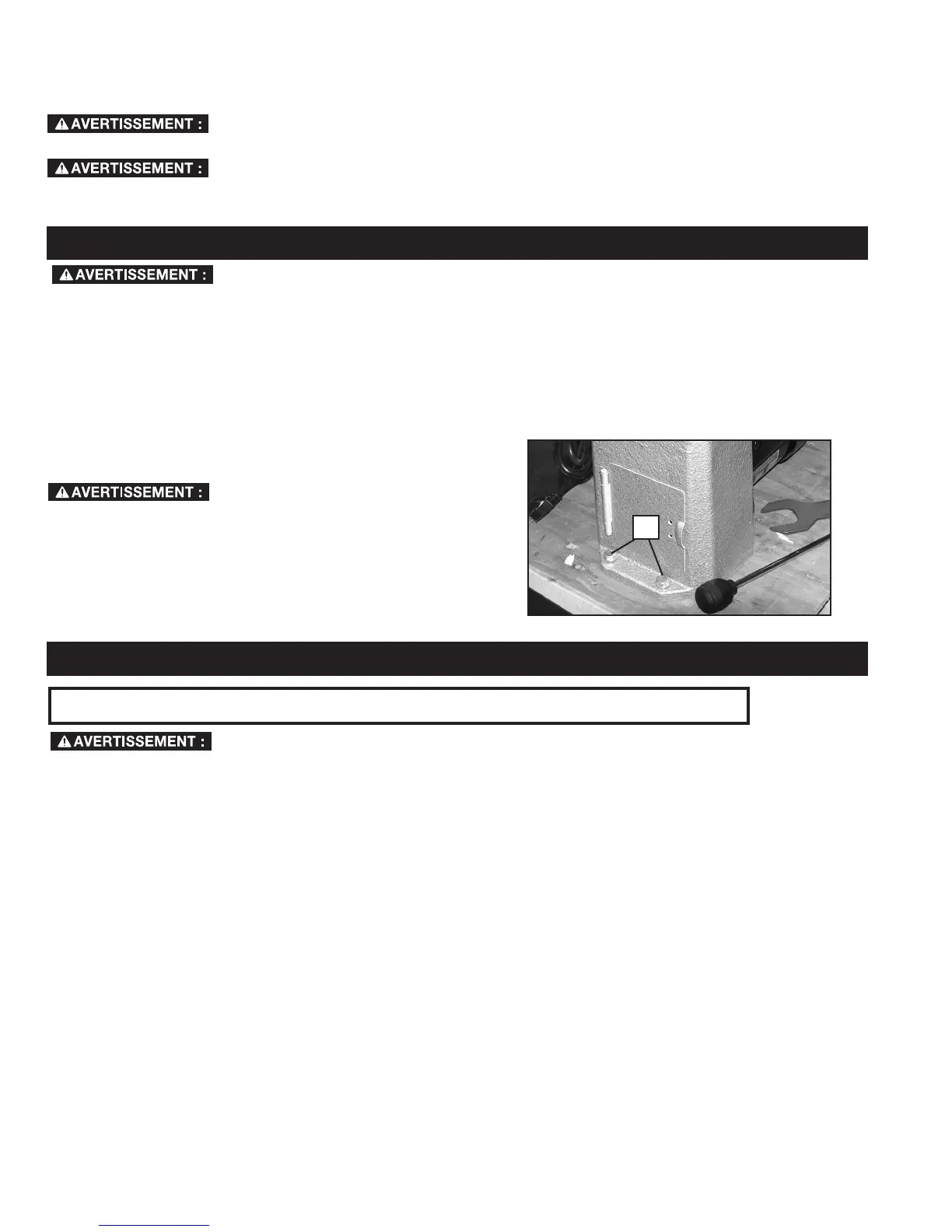 • Lors de tout réglage effectué sur le tour, serrez solidement toutes les vis et tous les leviers. S’assurer également de