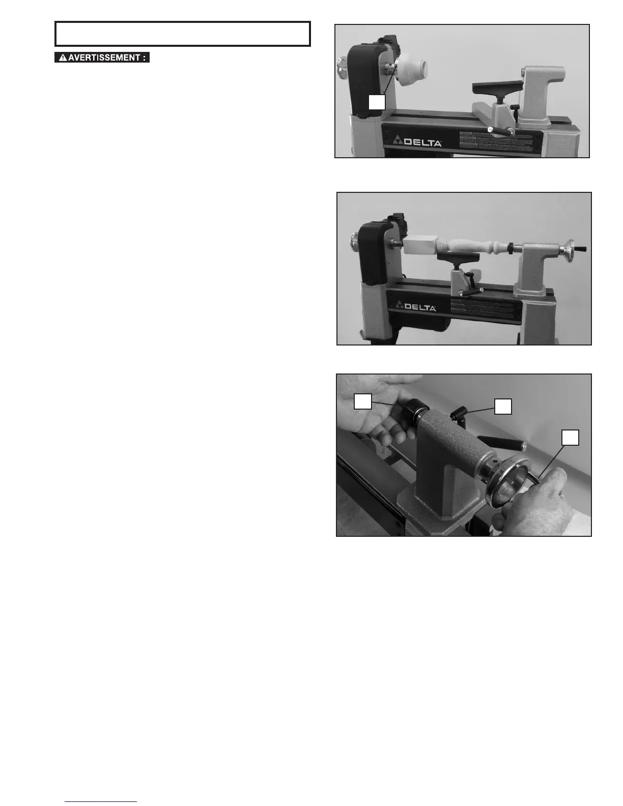 • Lors de tout réglage effectué sur le tour, serrez