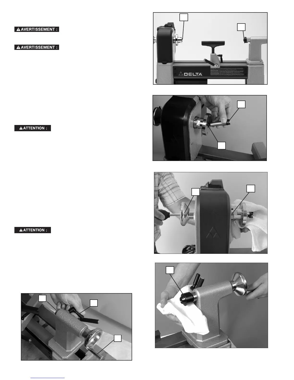 leviers lors de tout réglage effectué sur le tour.