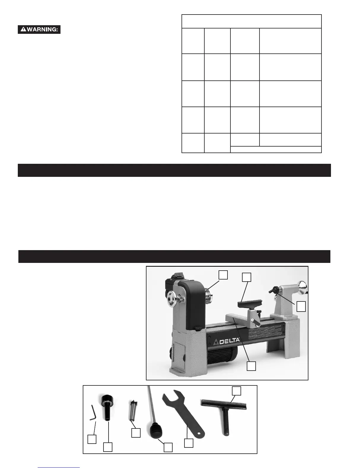 Midi-Lathe 46-455: Manual 5-speed lathe with a 3/4 HP Max that can turn objects at ve different speeds,