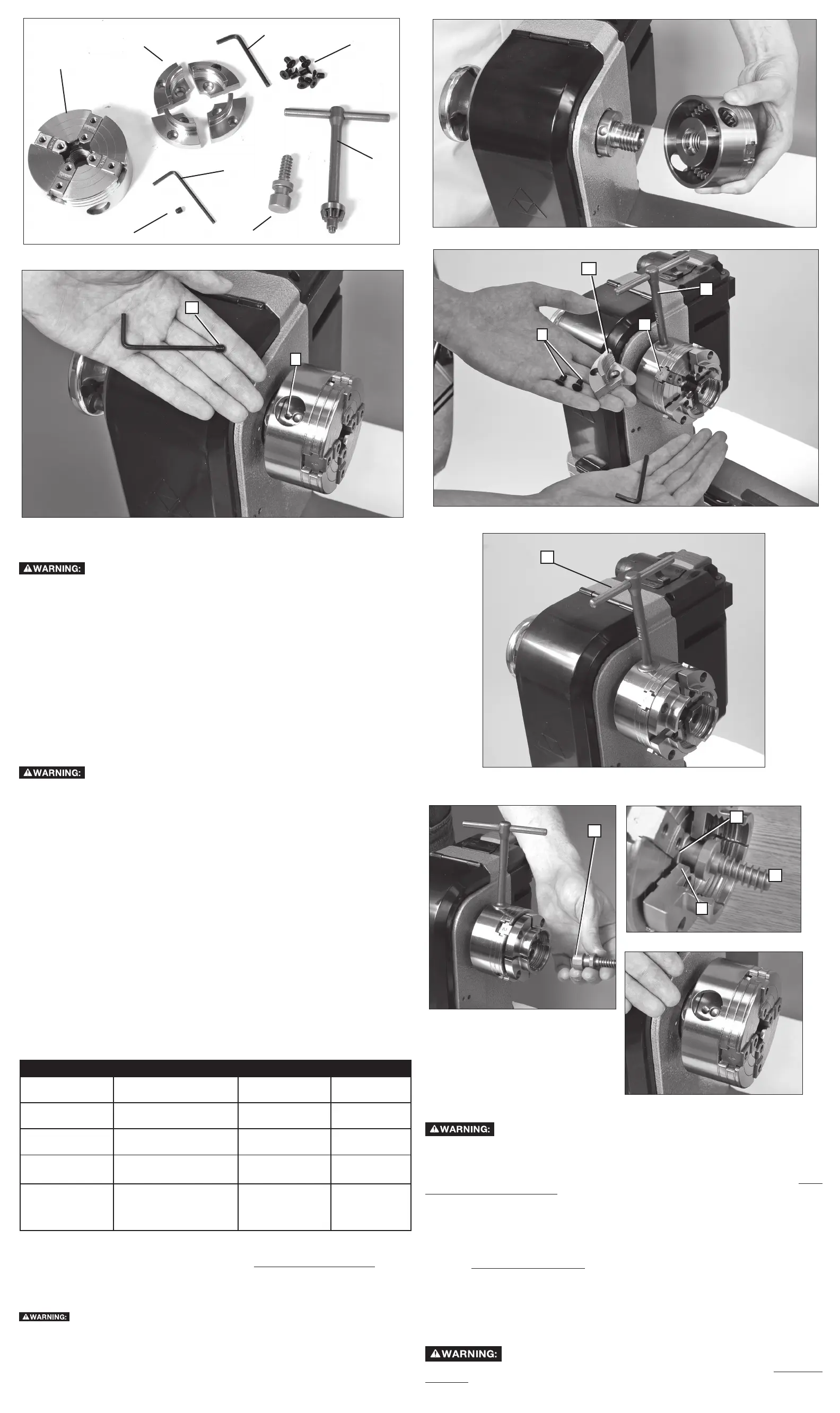 (Consult specific instructions included for any other jaw set.) Do not exceed 600 RPM with this