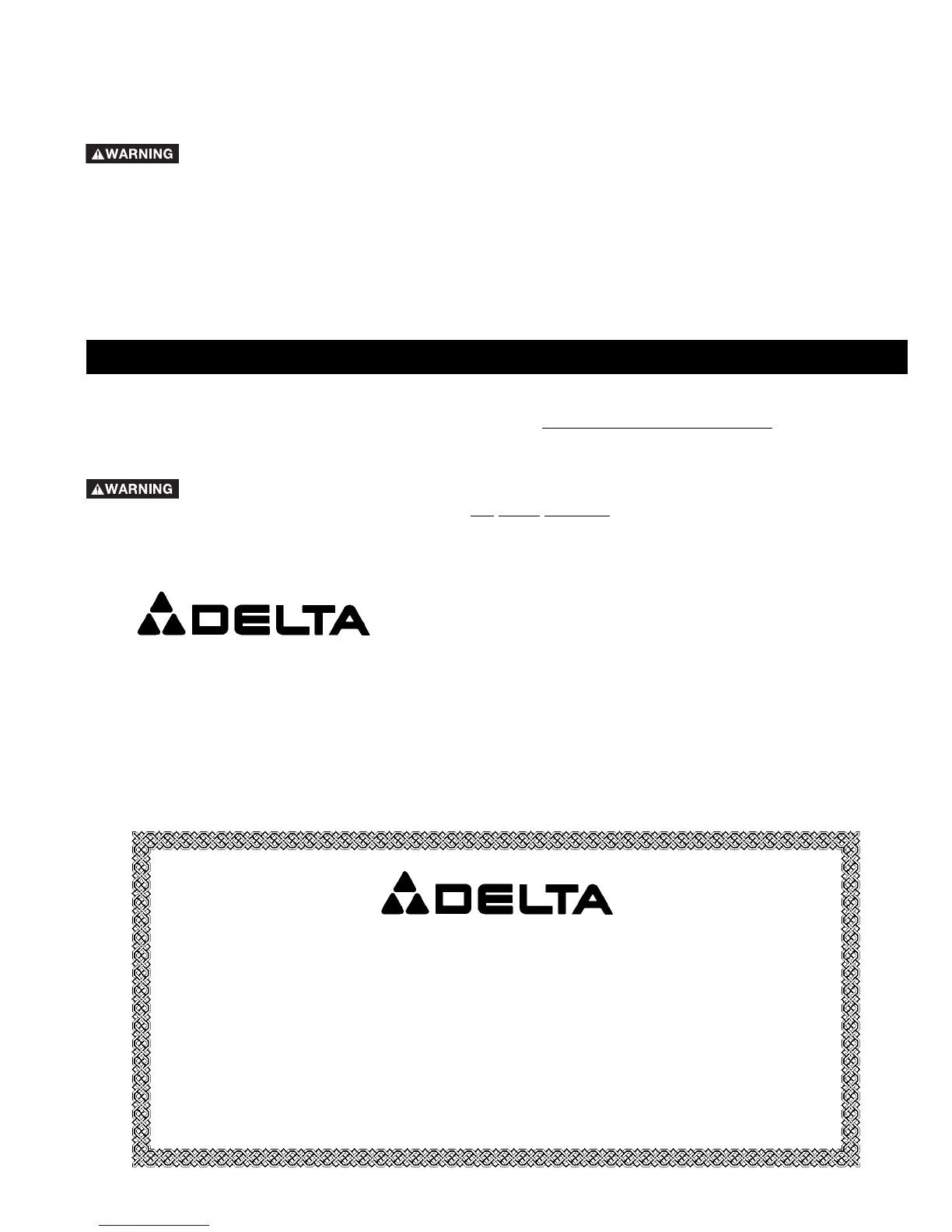 product, the warranty period is 180 days. Delta may require that electric motors be returned prepaid to a motor manufac-