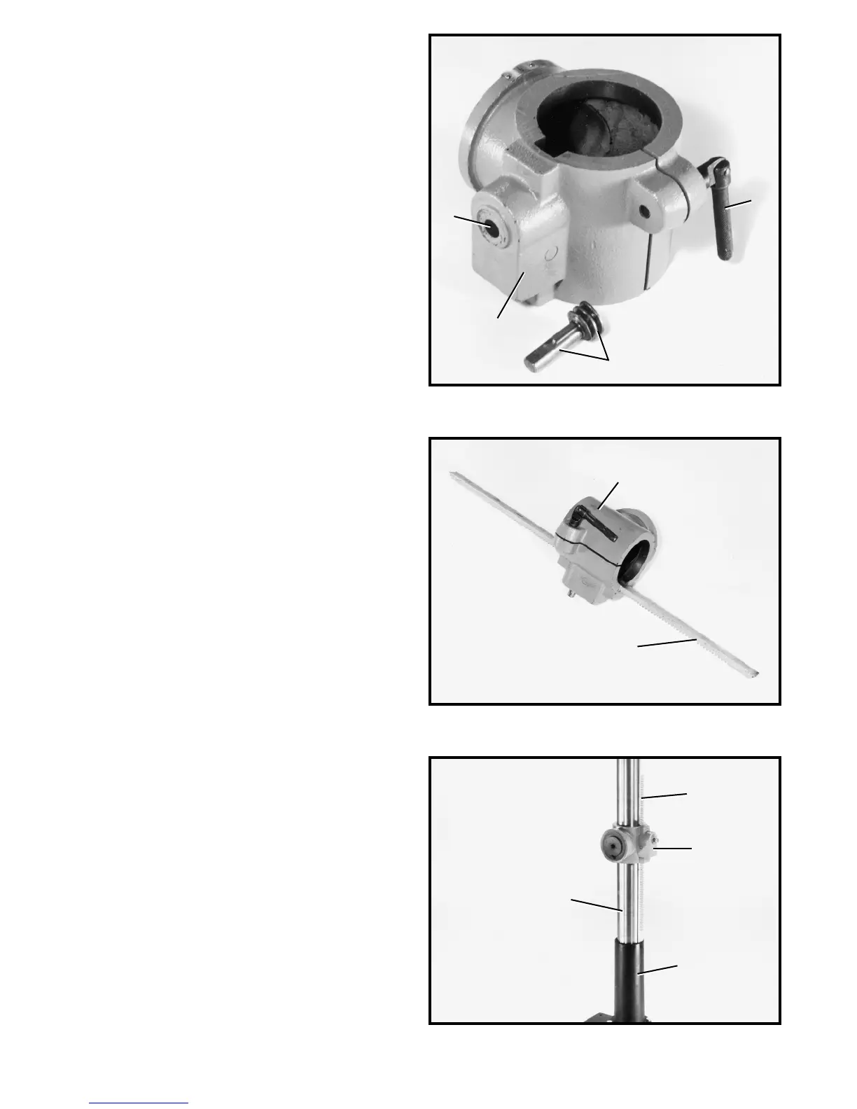 6. Slide table bracket (H) Fig. 6, with raising rack (E)
