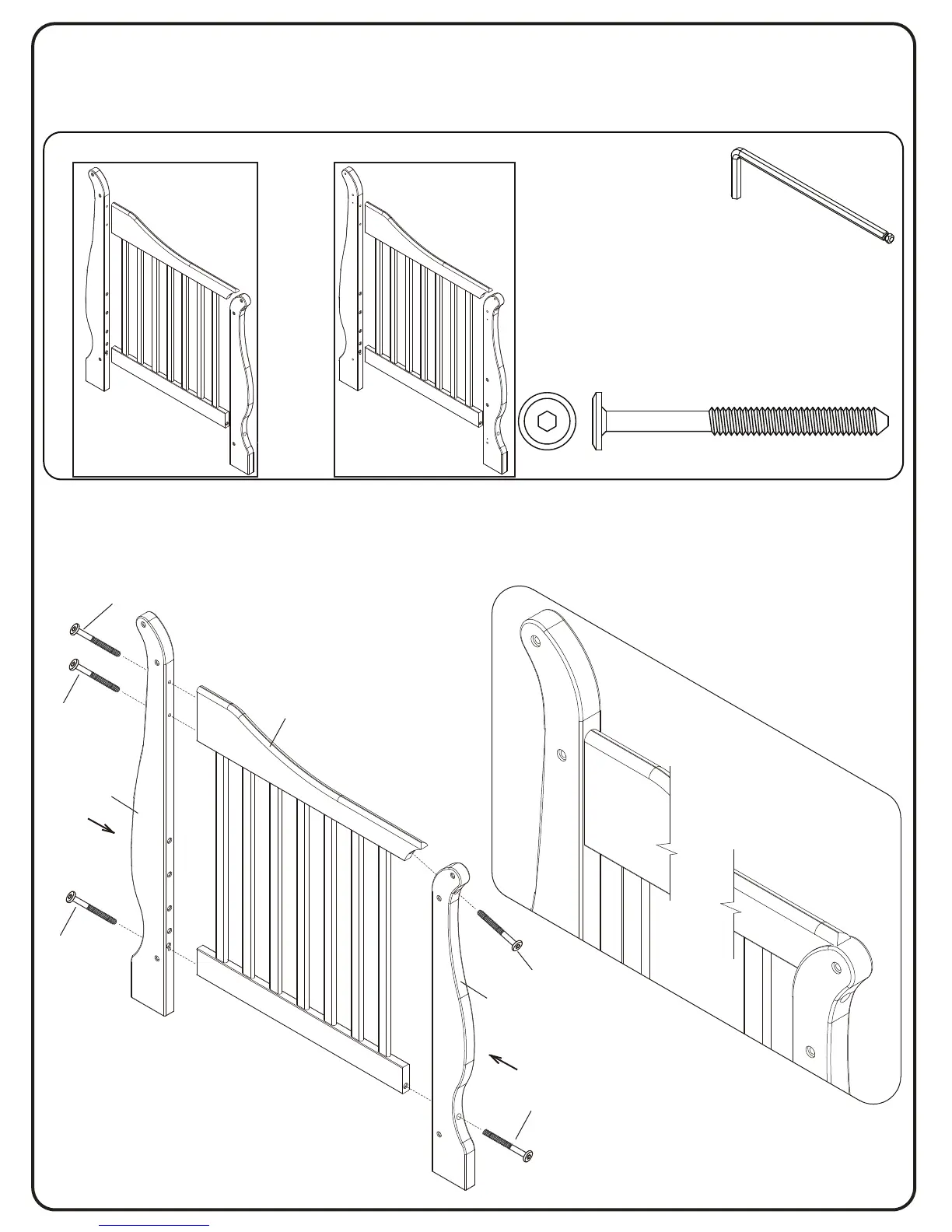 Attach (1) Crib End Panel (Part C1) to (1) Left Back Post (Part C3) and (1) Left Front Post (Part C2)