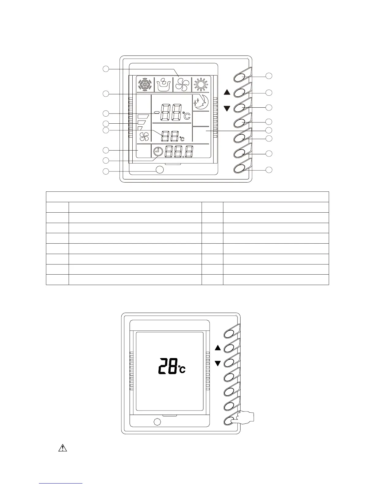 5 Set Temp. display 13 Fan control button