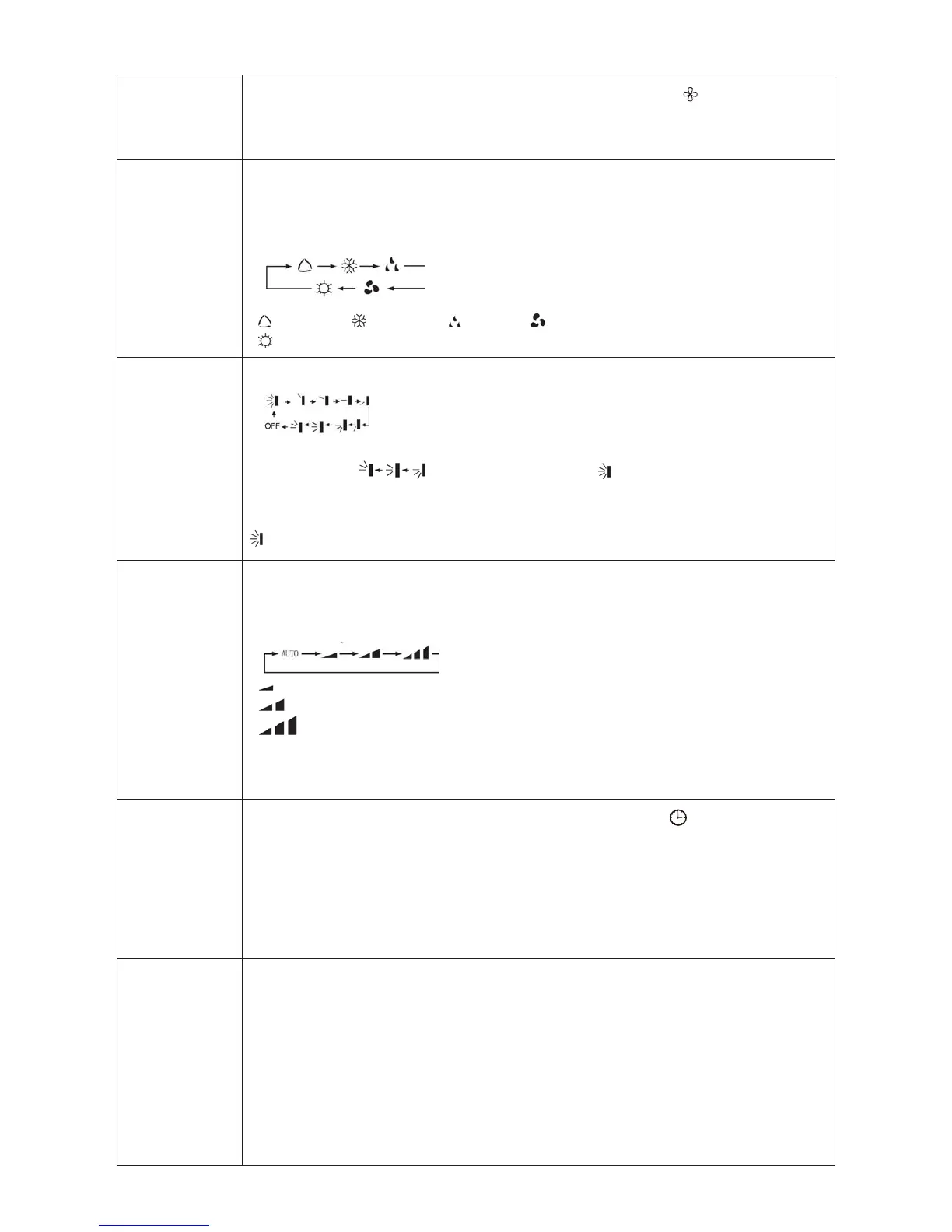 Press this button to set up the swing angle, which circularly changes as below: