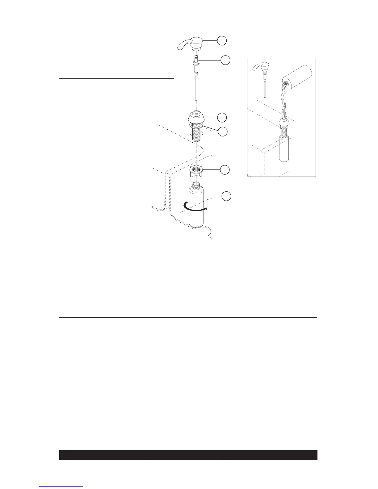 the sink screw the bottle (5) onto the body assembly shank. Insert pump (6) into head (2), then drop