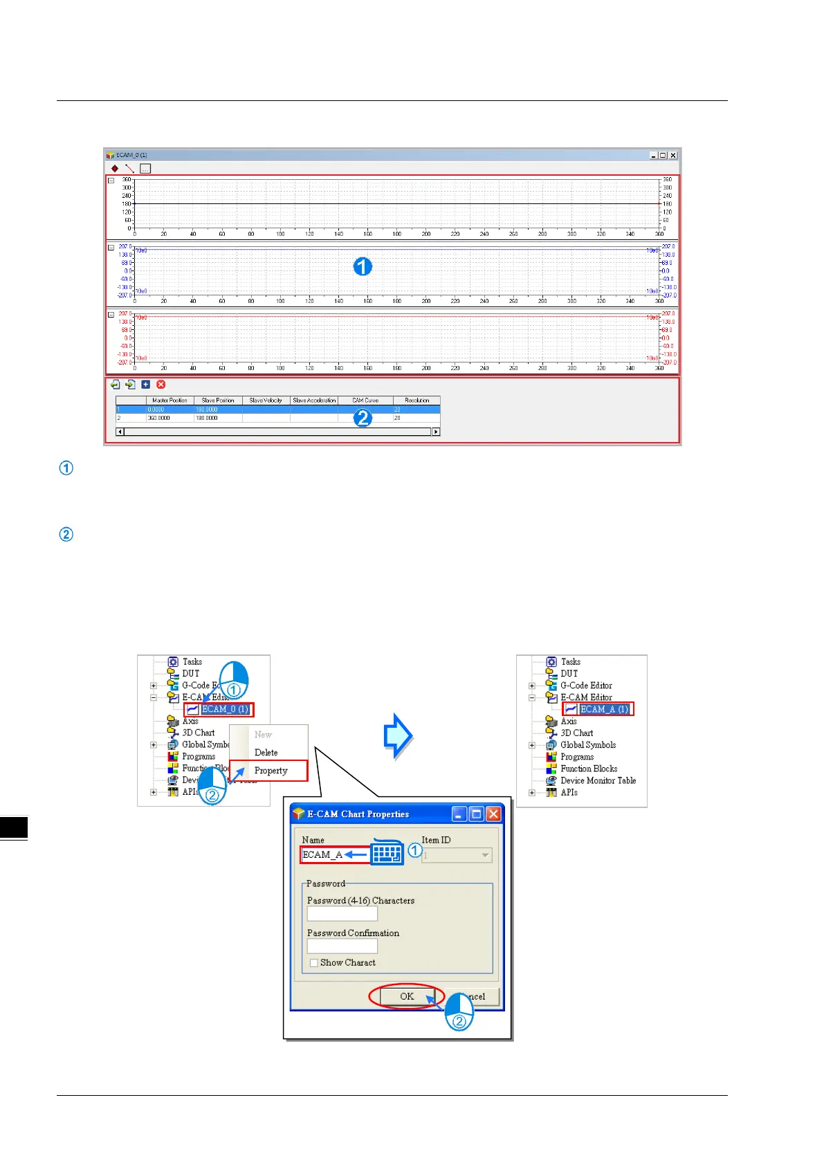 change the name and password of this E-CAM item. Note that Item ID is not allowed to be changed. Refer to the diagram