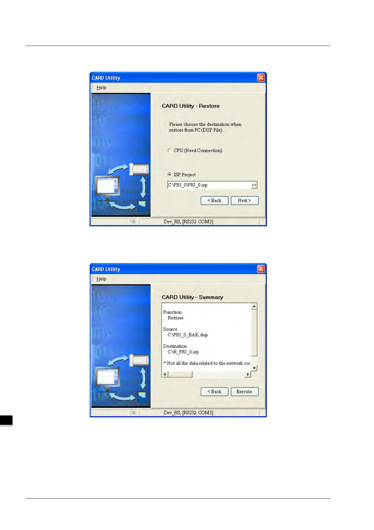 (4) After you make sure that the summary in the CARD Utility window is consistent with the desired data restoration