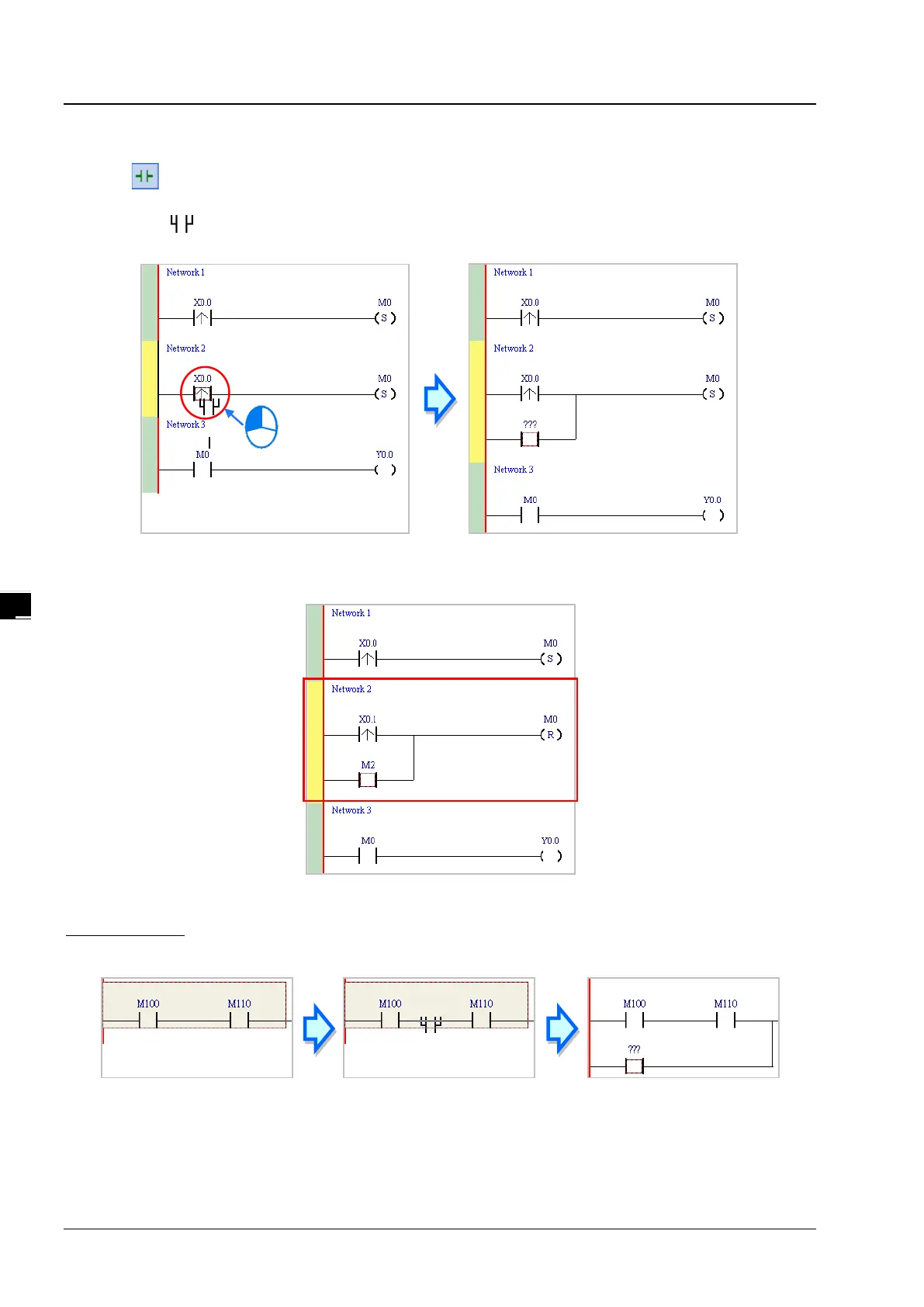 appear as a contact. Move the mouse cursor to the button of the input contact in network 2. After the mouse cursor