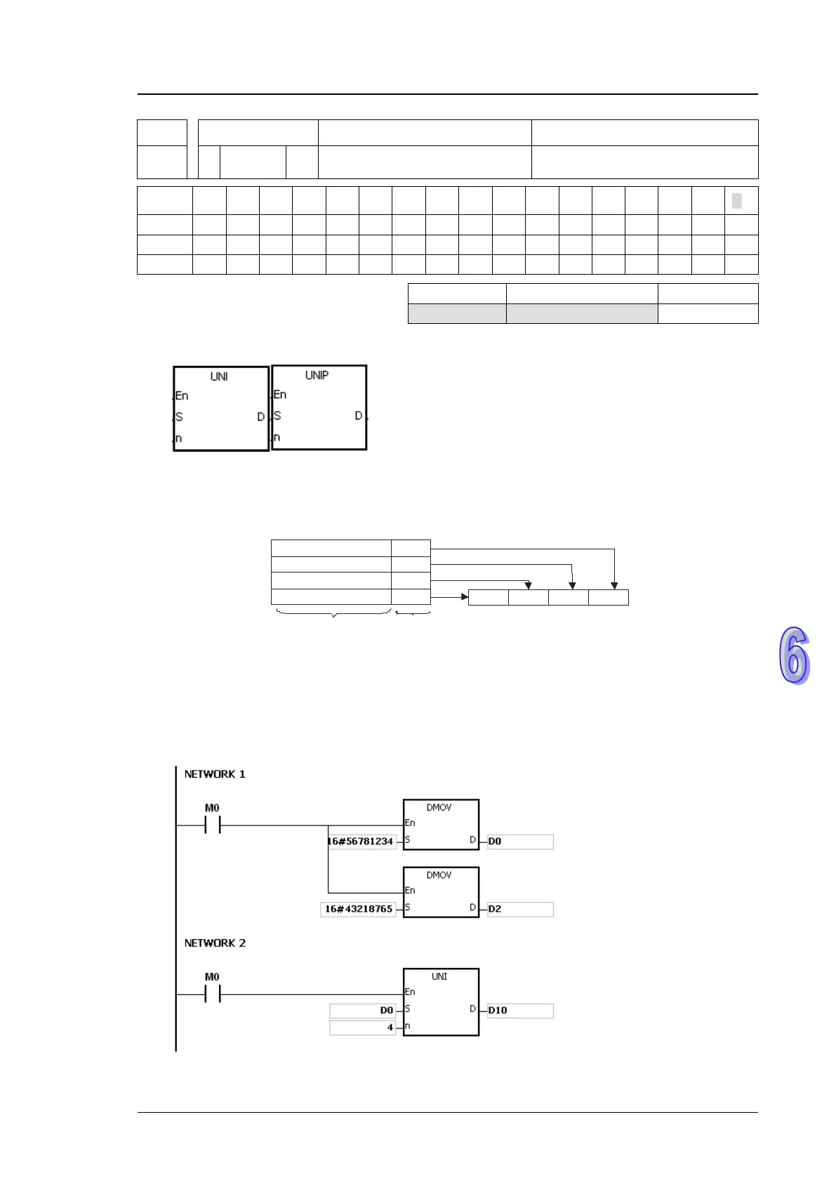 M0 is enabled, the instruction UNI is executed. The values in D0~D3 are divided into groups (four