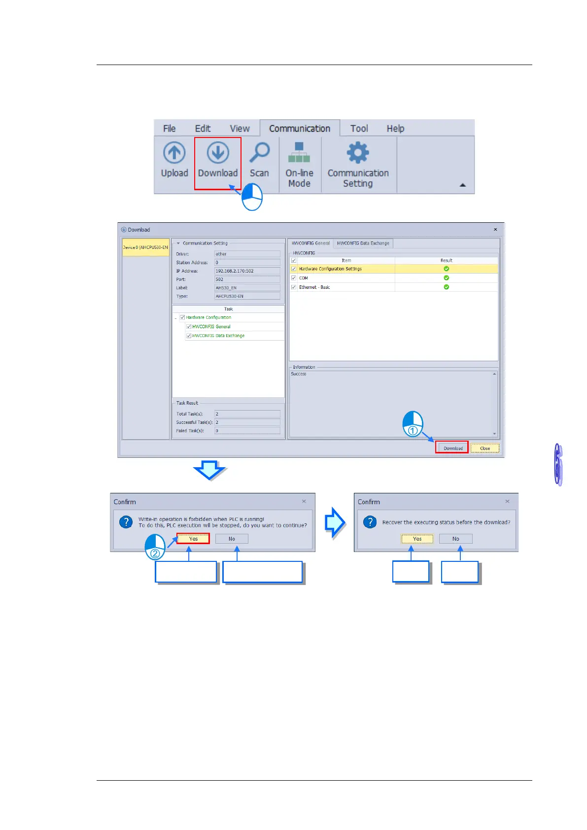 LED indicator on the CPU module will be OFF. The users can close the HWCONFIG window. If the
