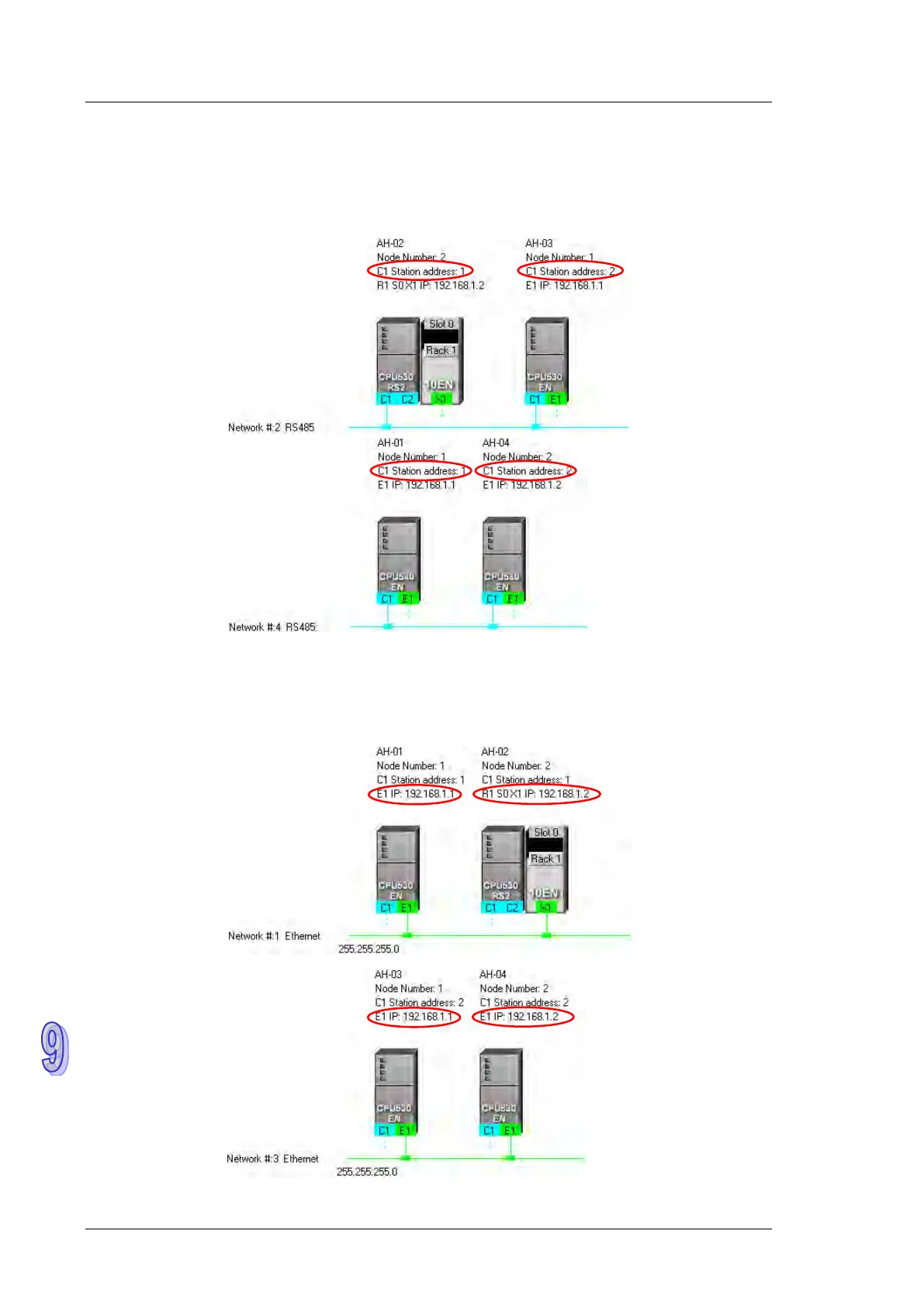 In principle, the RS-485 station address of a port in a network can not be the same as the RS-485 station
