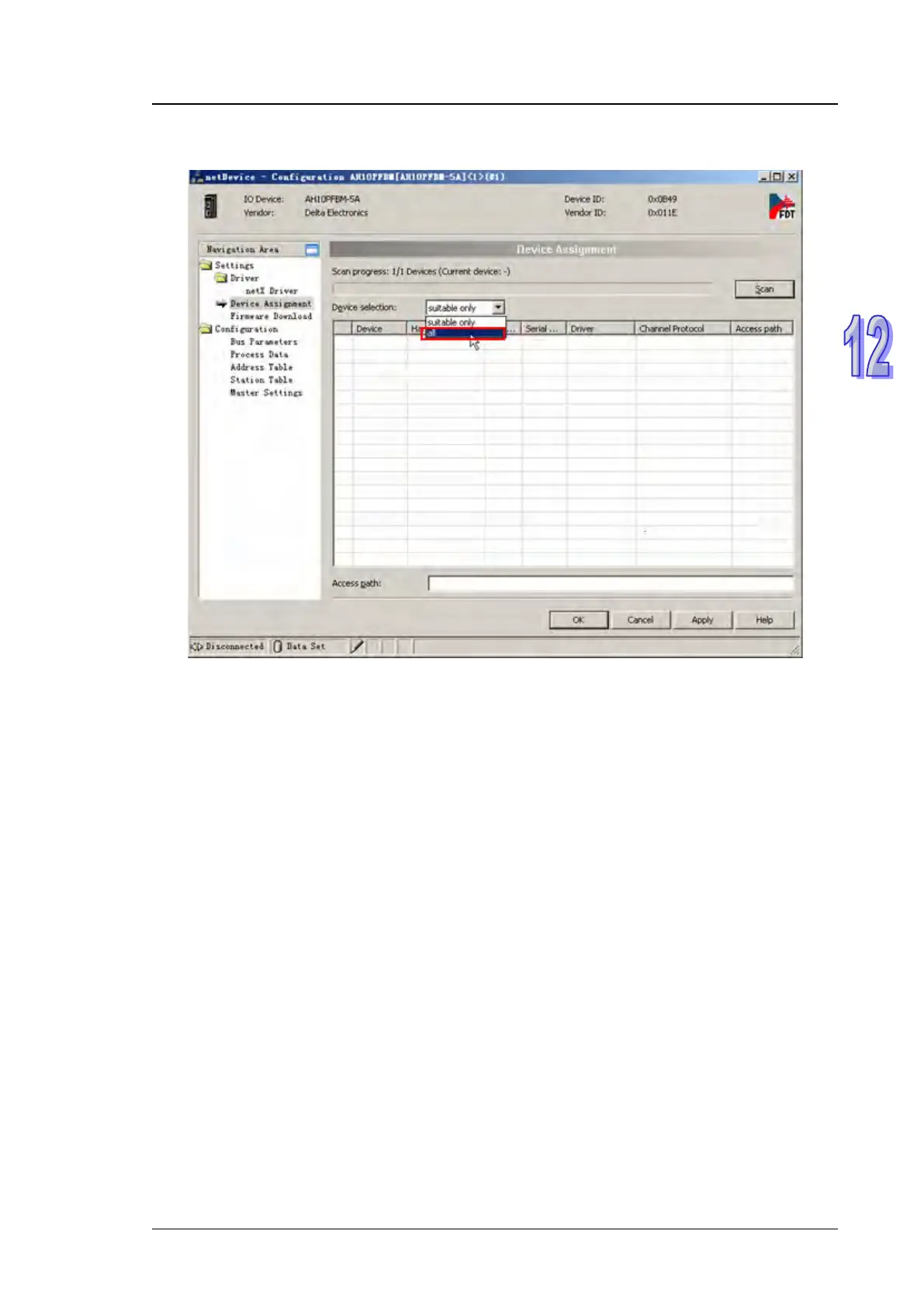 7. Click Scanbutton on the right-side window after clicking “Device Assignment” item on the left-