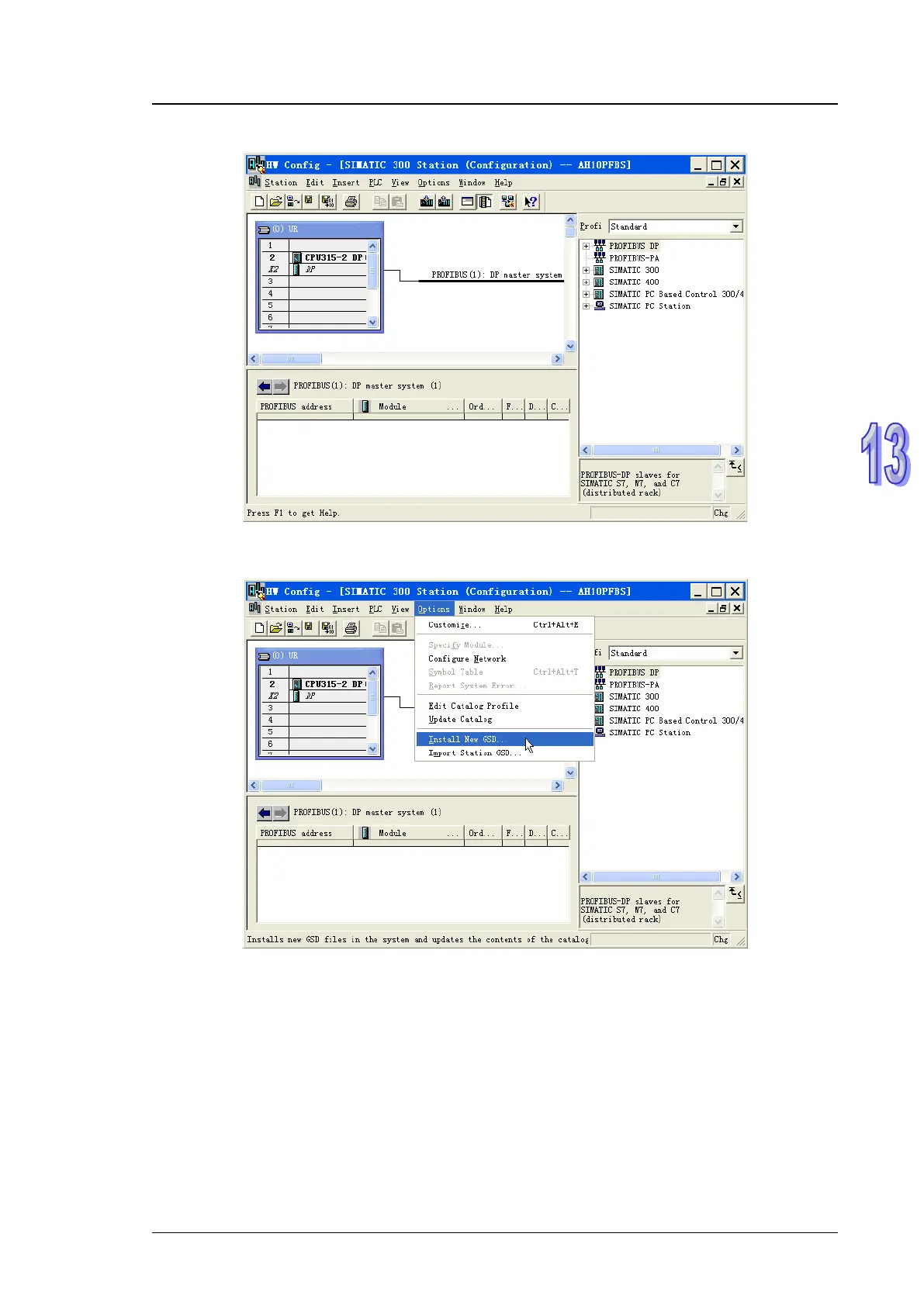 1. Select “Options”>>“Install New GSD…” in the following “HW Config” dialog box.