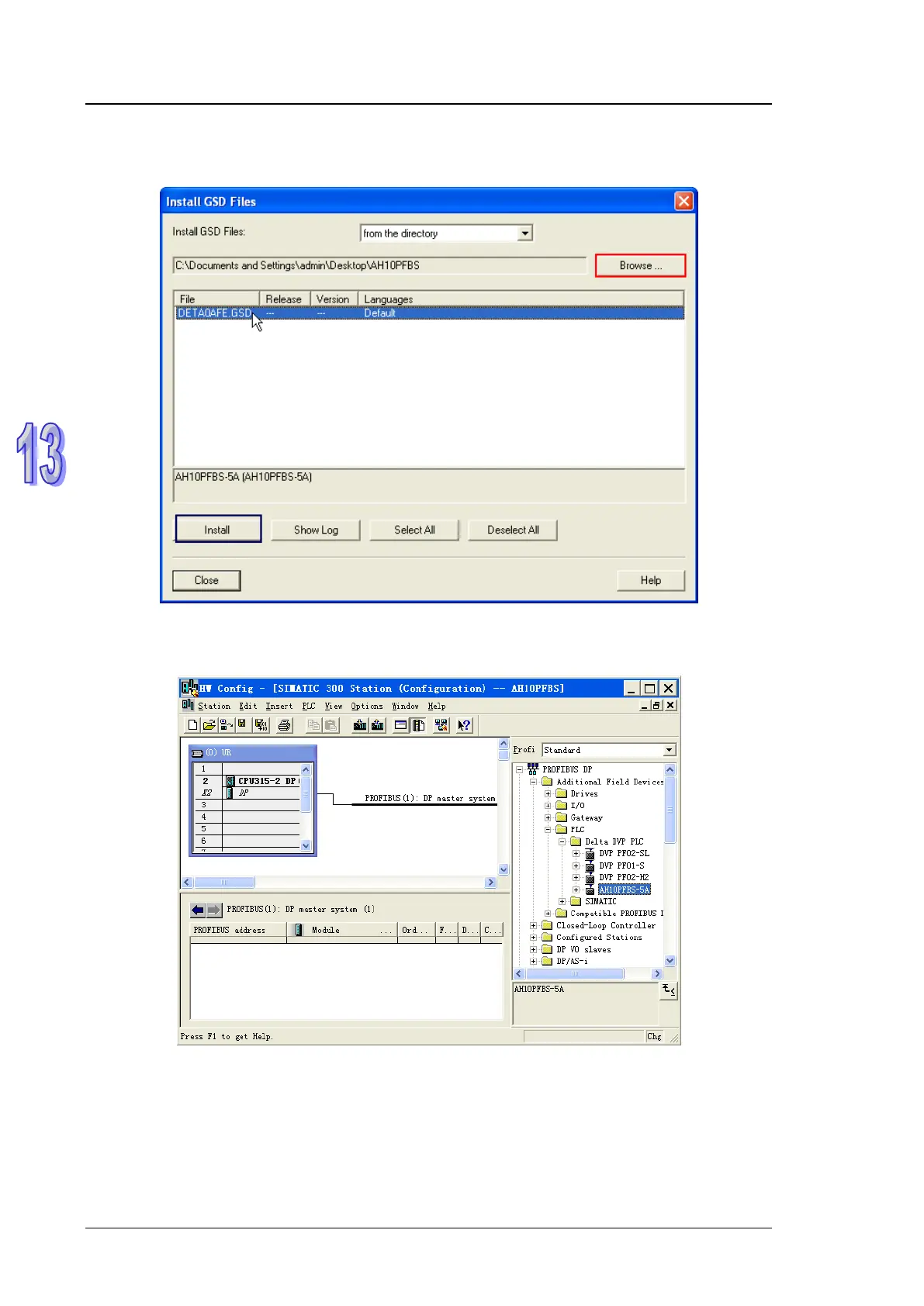 adding the GDS file of AH10PFBS-5A. AH10PFBS-5A is the PROFIBUS-DP slave newly