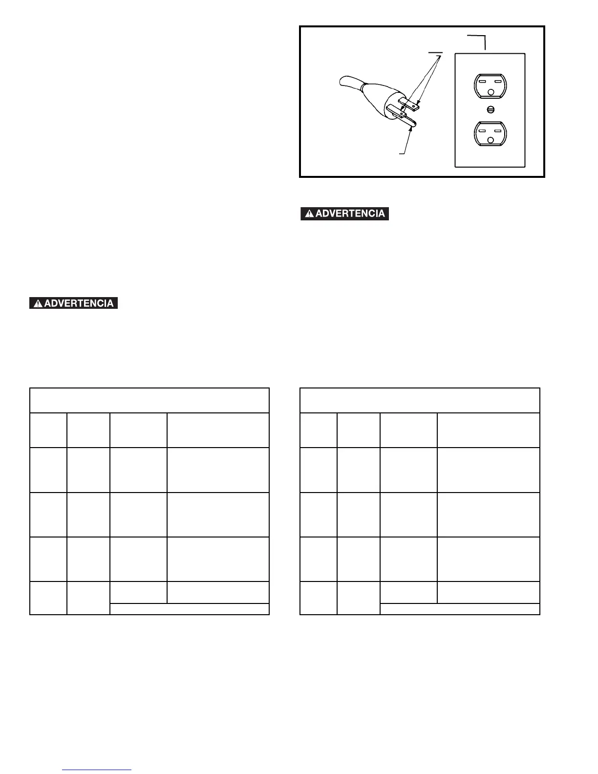 tres terminales y un receptáculo coincidente que acepte el enchufe de la máquina. Cuando utilice un cordón de extensión,
