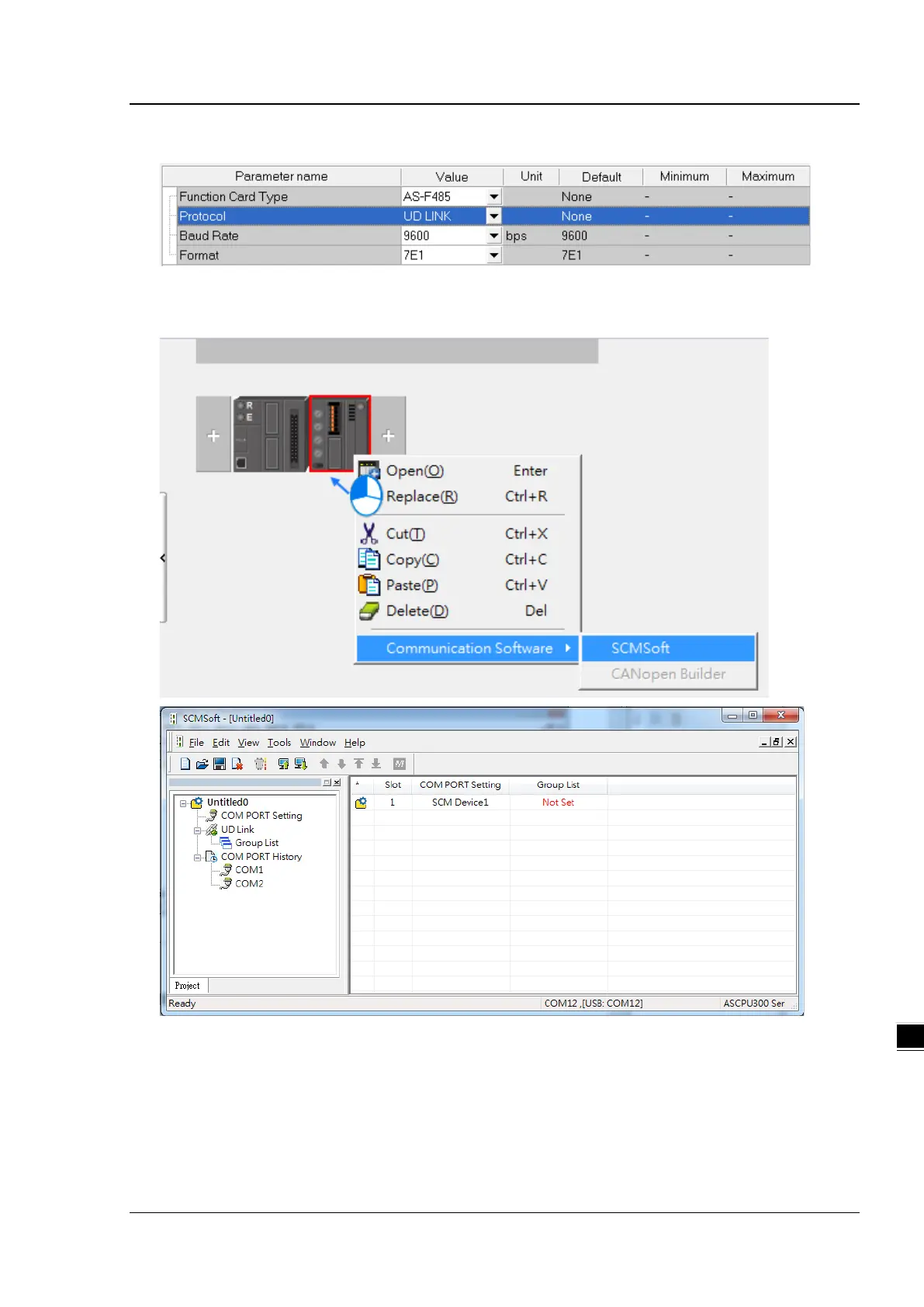 5) Right-click the AS00SCM-A and click Communication Software and then click SCMSoft.