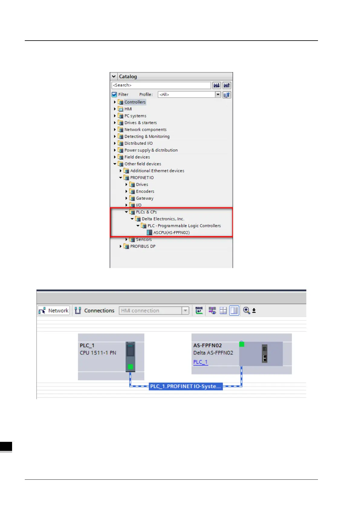 Connect S7-1500 and AS-FPFN02 together with an Ethernet connection and edit their IP addresses.