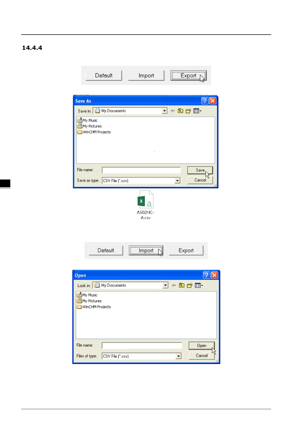 1. Click Export in the Device Settings dialog box to save the current parameters as a CSV file (.csv).