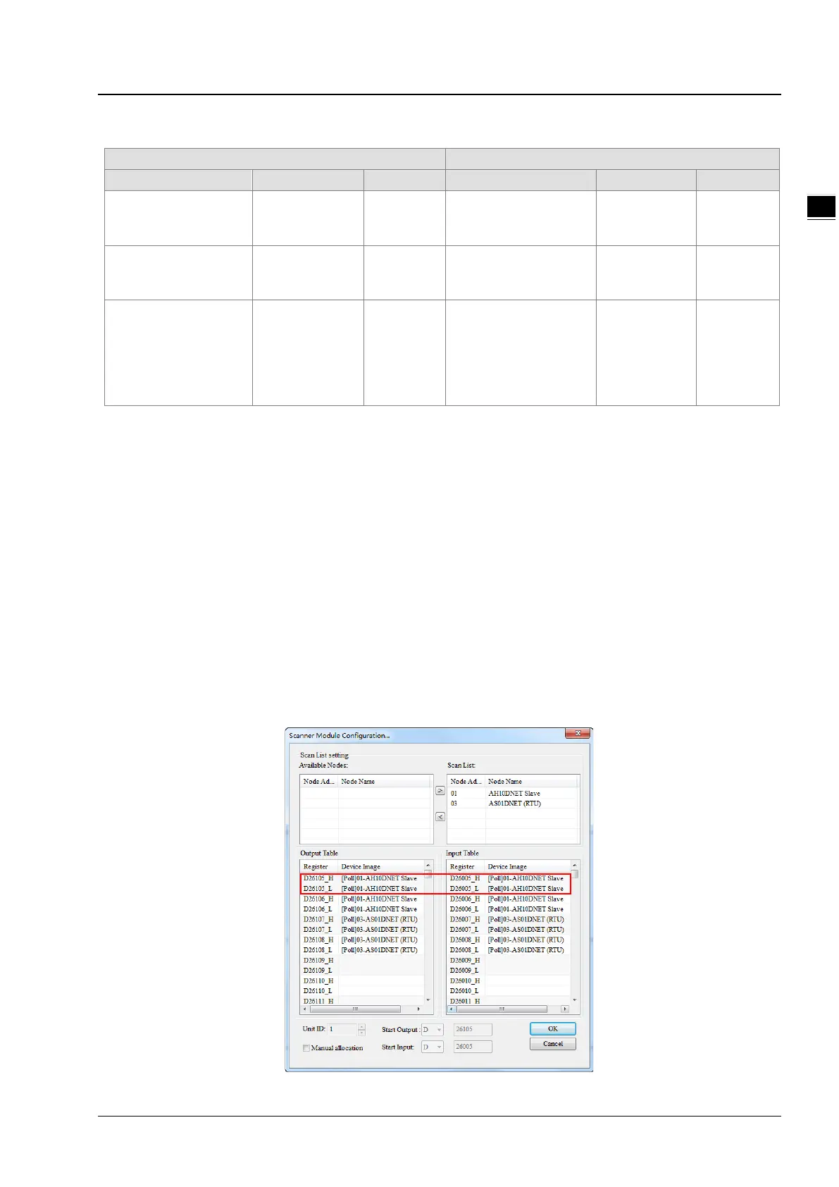 The start input and start output mapping addresses of AS01DNET (RTU) are assigned automatically by the master when