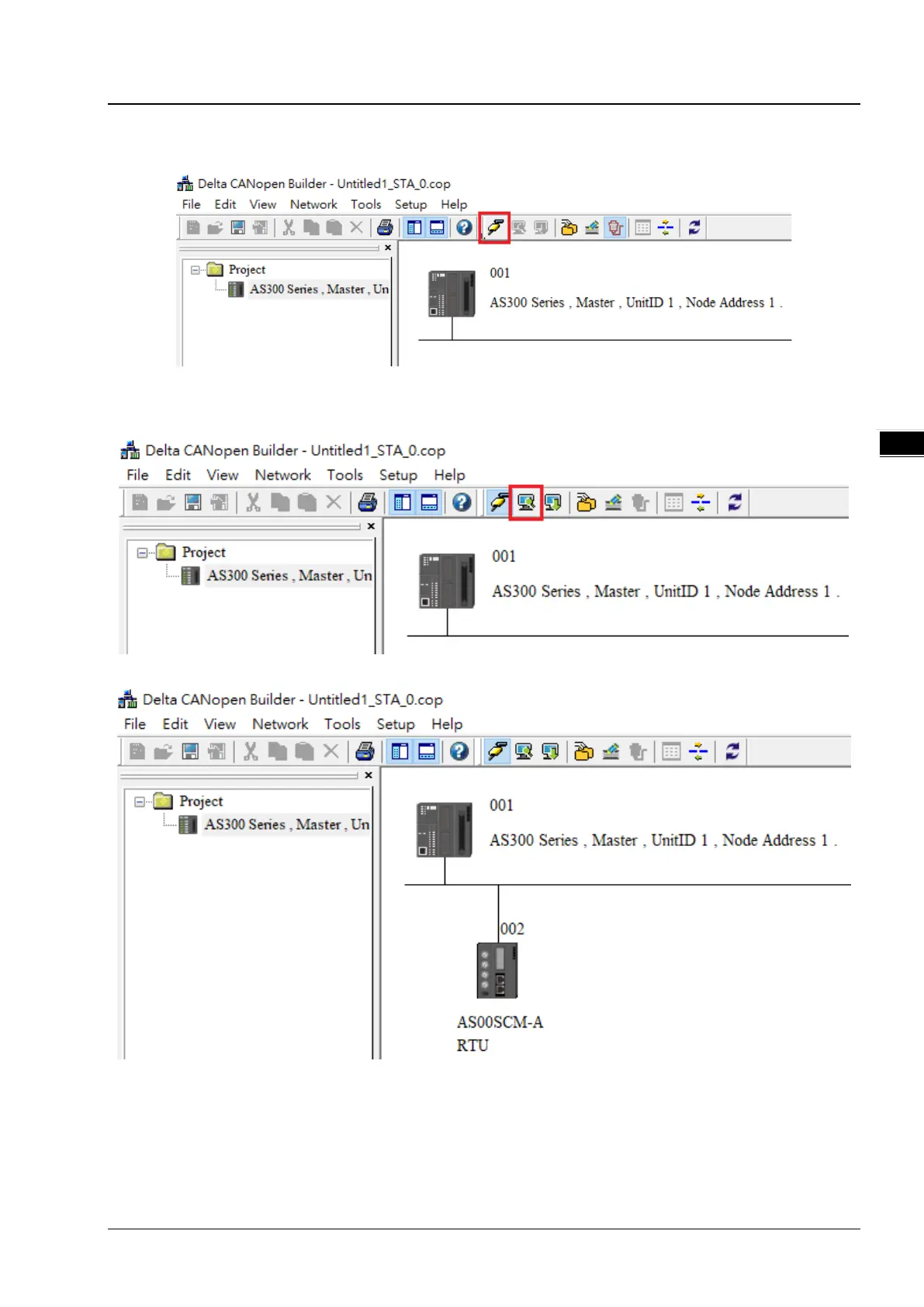 Click the Scan button. Then the AS00SCM-A RTU module can be detected.