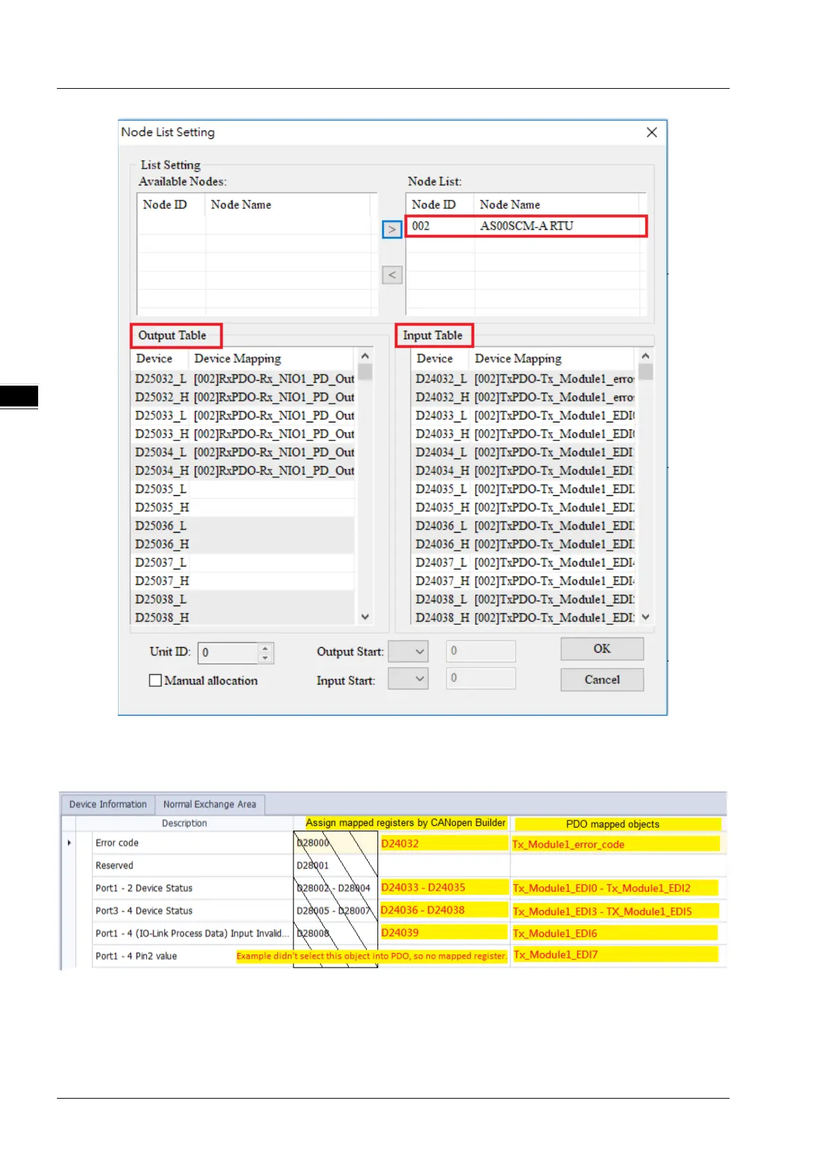 According to the Normal Exchange Area page in HWCONFIG in section 13.4.3, the PDO mapped objects correspond to