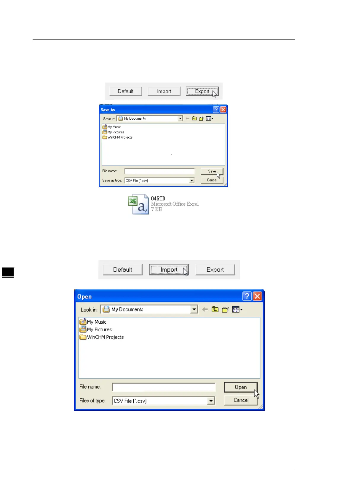 (1) Click Export in the Device Setting dialog box to save the current parameters as a CSV file (.csv).