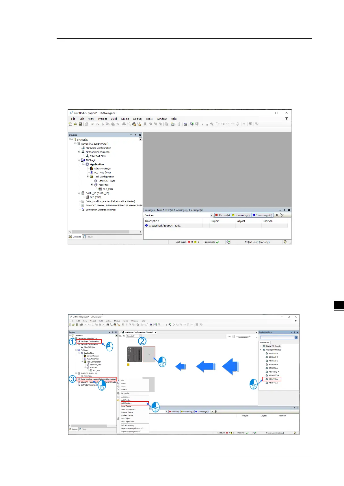 (1) Start DIADesigner+, click New Project, and then Project+Device to create a new project.