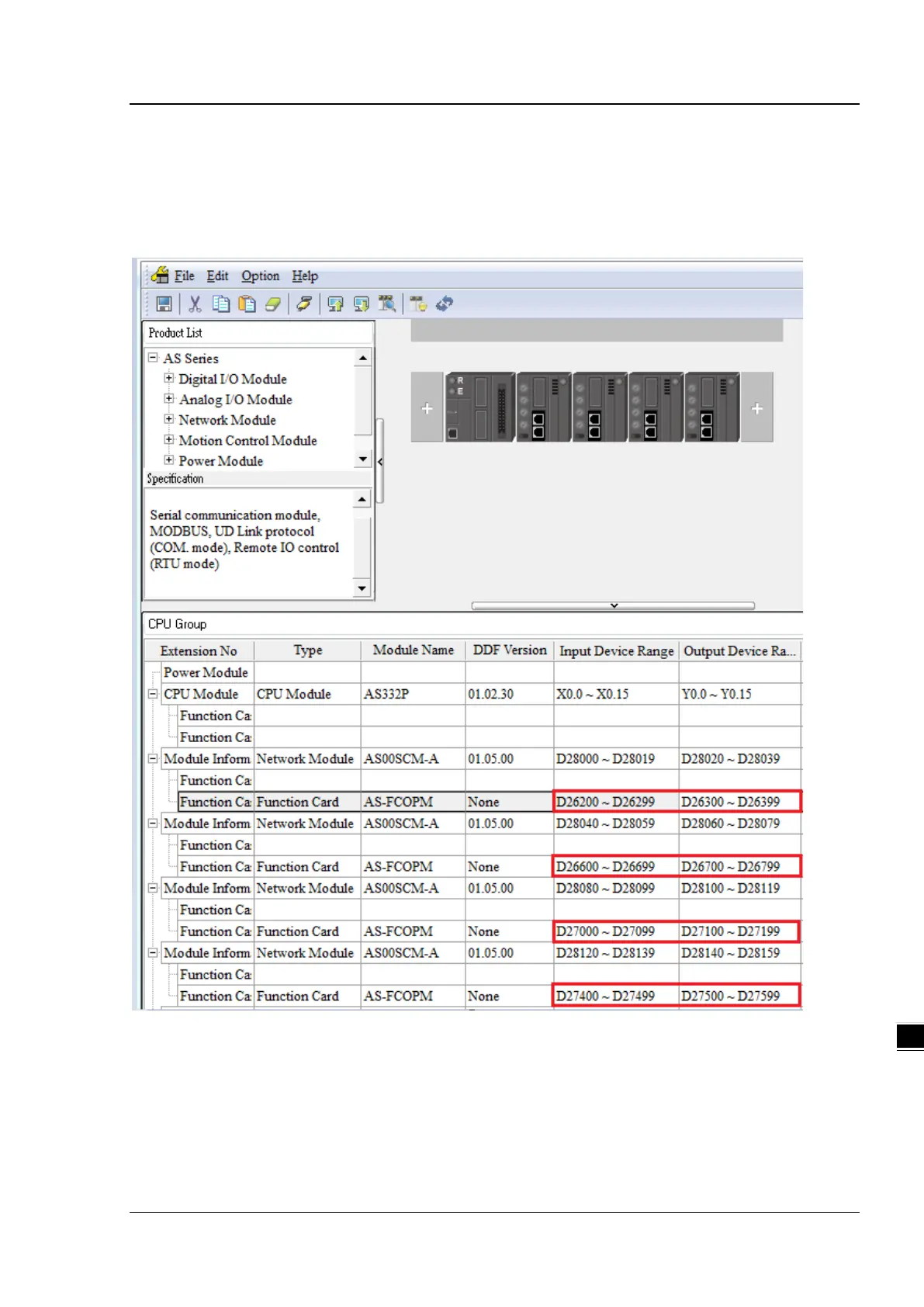 side of the CPU PLC are shown in the example below from the HWCONFIG utility. The red box below is the data