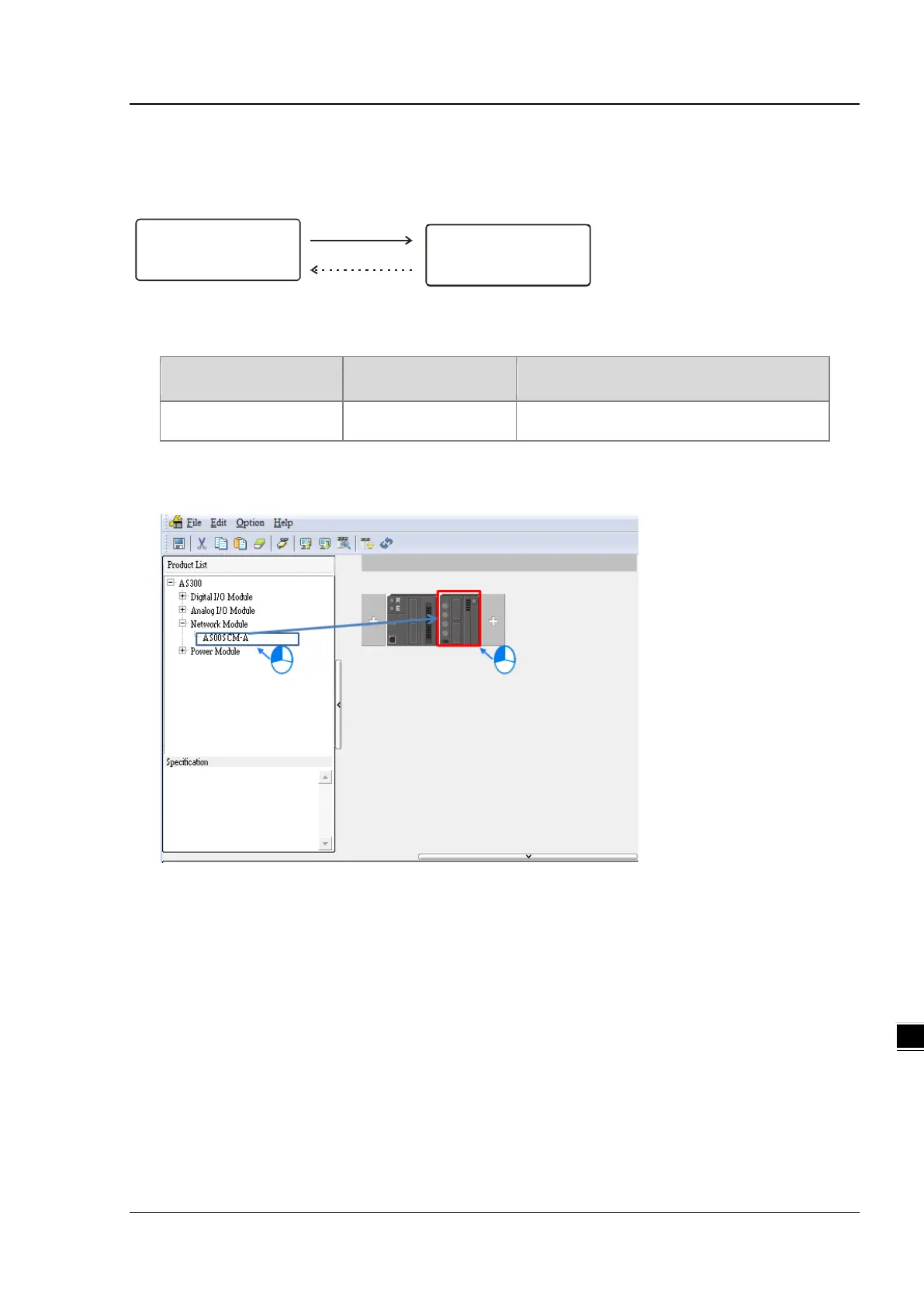 1) Drag to add AS00SCM-A in the system configuration area. Make sure the knob of AS00SCM-A is turned to COM