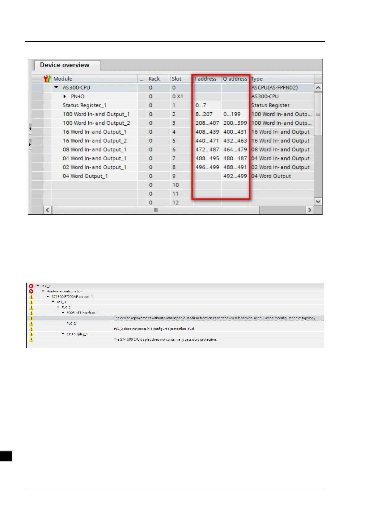Consumption Status (IOCS) of each module too. Here the example shows the address area of the input module is taken