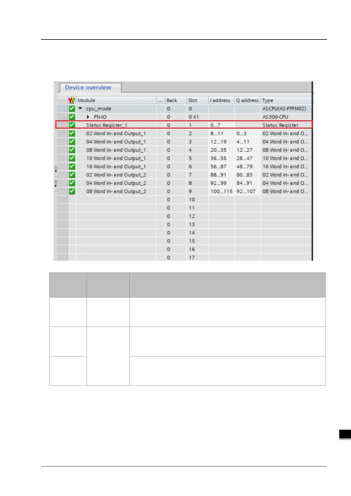 card status. Up to 8 bytes of status registers can be used for displaying the status of PN Device. See the example below.