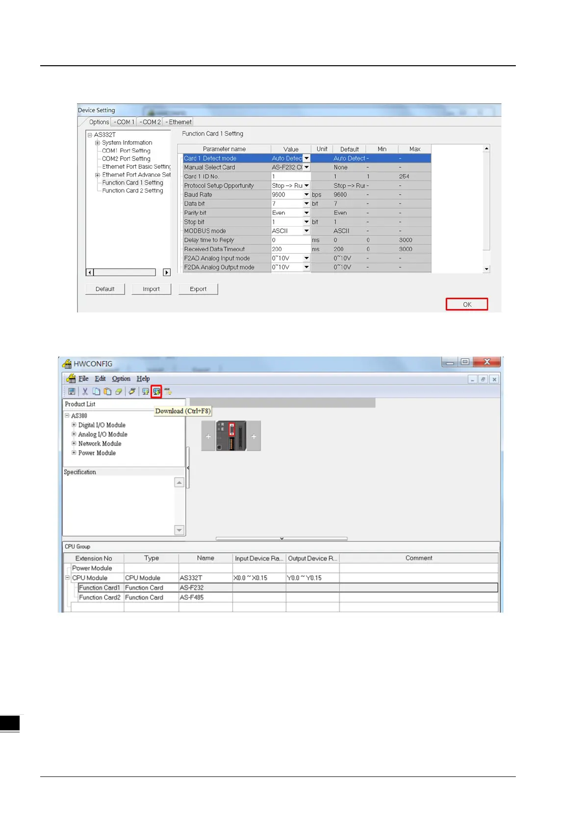 (4) Click Download on the toolbar to download the parameters. Note that you cannot download the parameters while