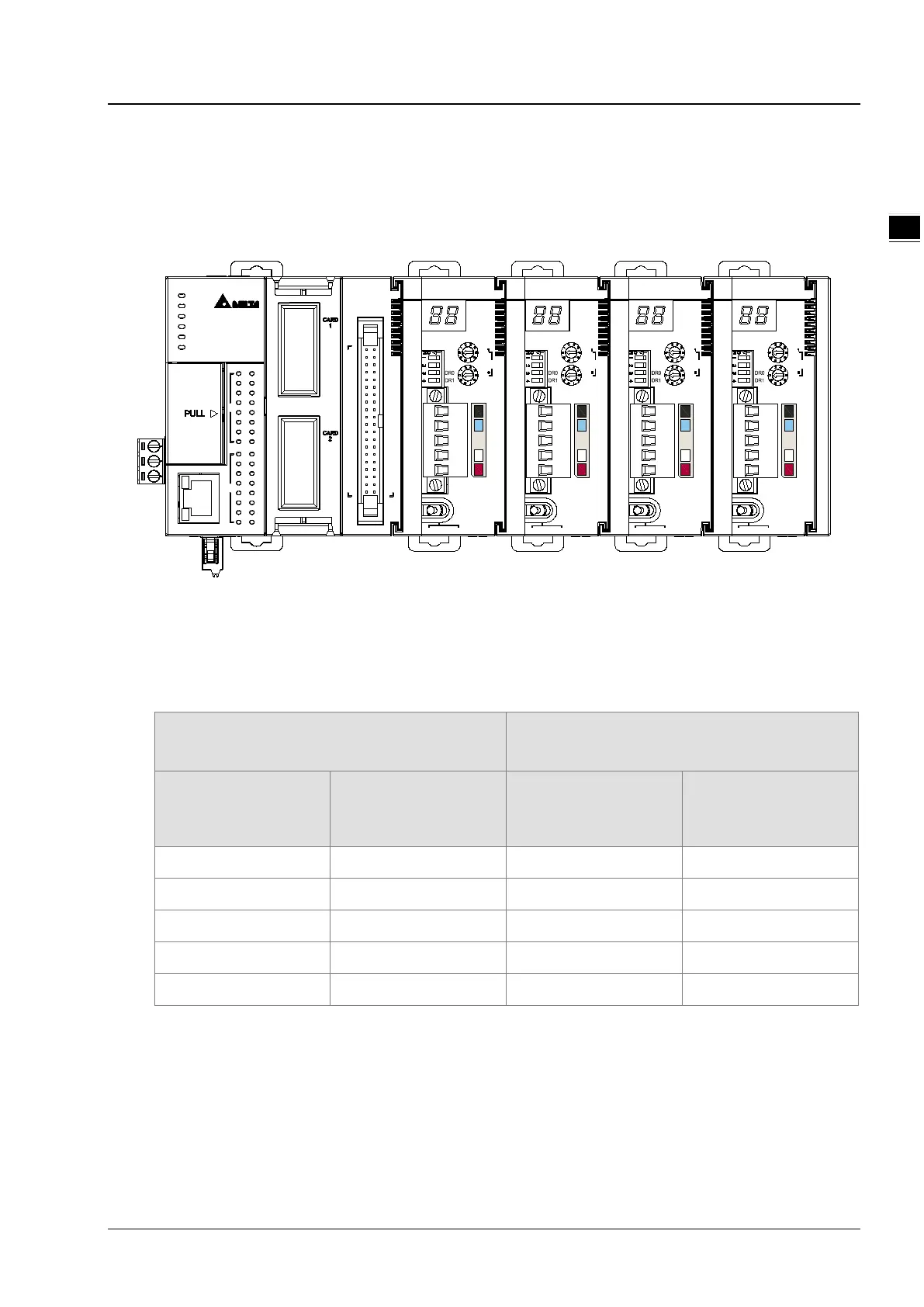 Up to four AS01DENT modules can be connected to the right side of AS PLC at most. After AS01DNET modules and