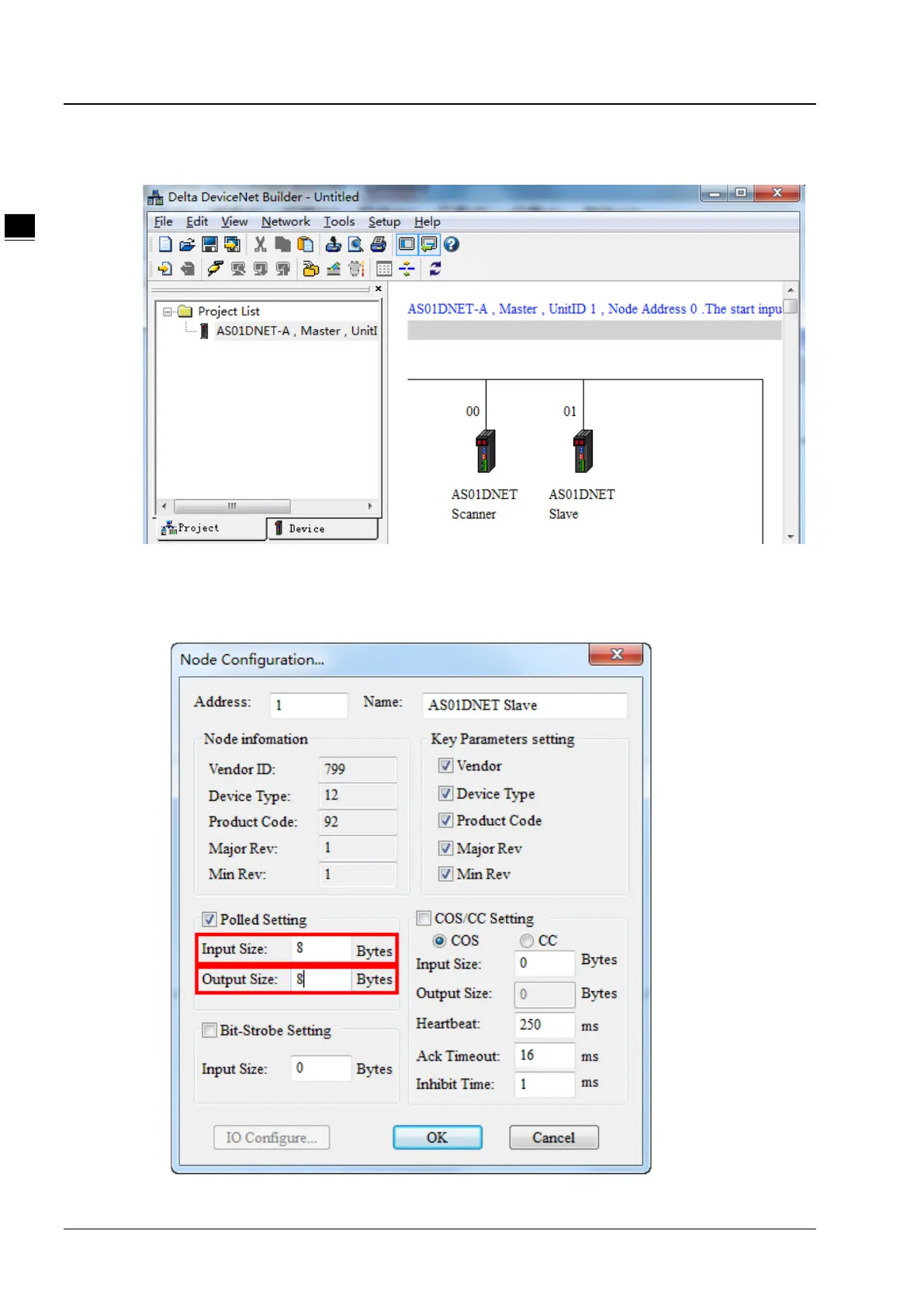 7. Double click the icon of AS01DNET Slave. Then the Node Configuration dialogue box appears. Input Size