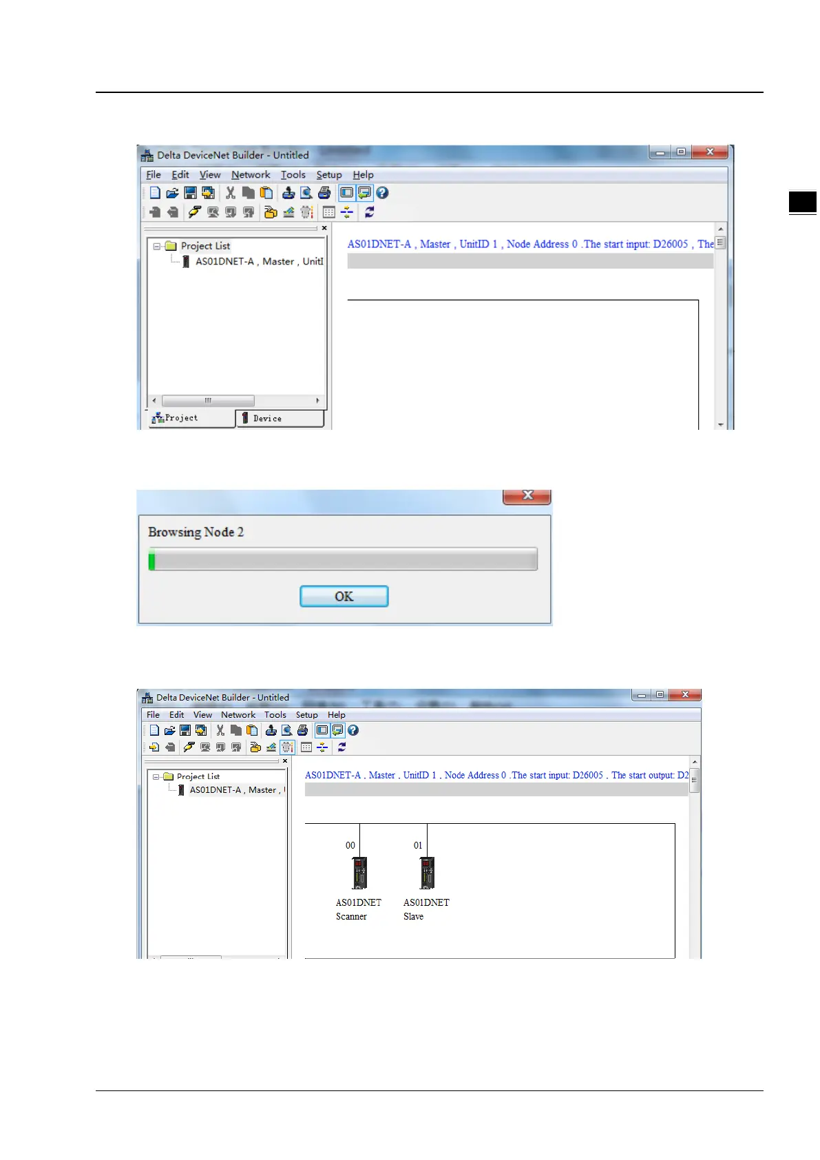 4. Clicking Network>> Scan DeviceNet Network, the DeviceNet Builder software starts to scan the whole network.